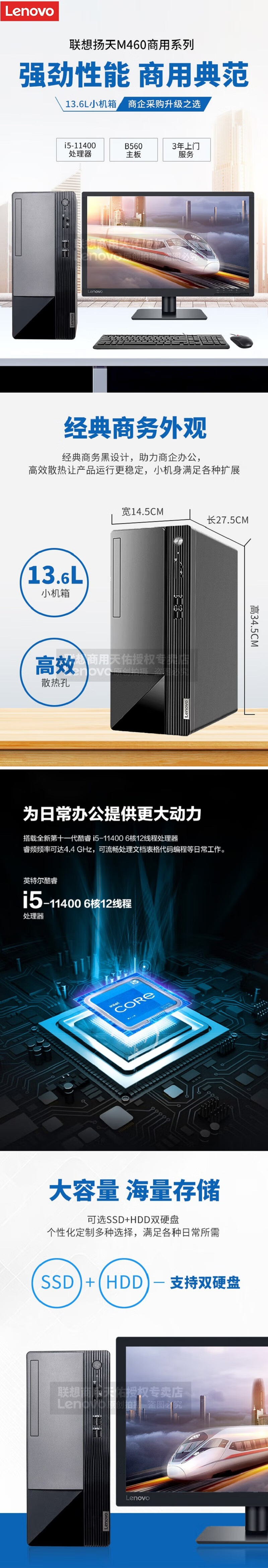 联想/LENOVO 扬天M460-16IRL台式计算机 台式机商用办公电脑 (I5/8G/512G)+23.8英寸 包安装