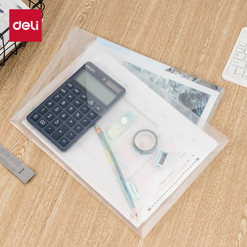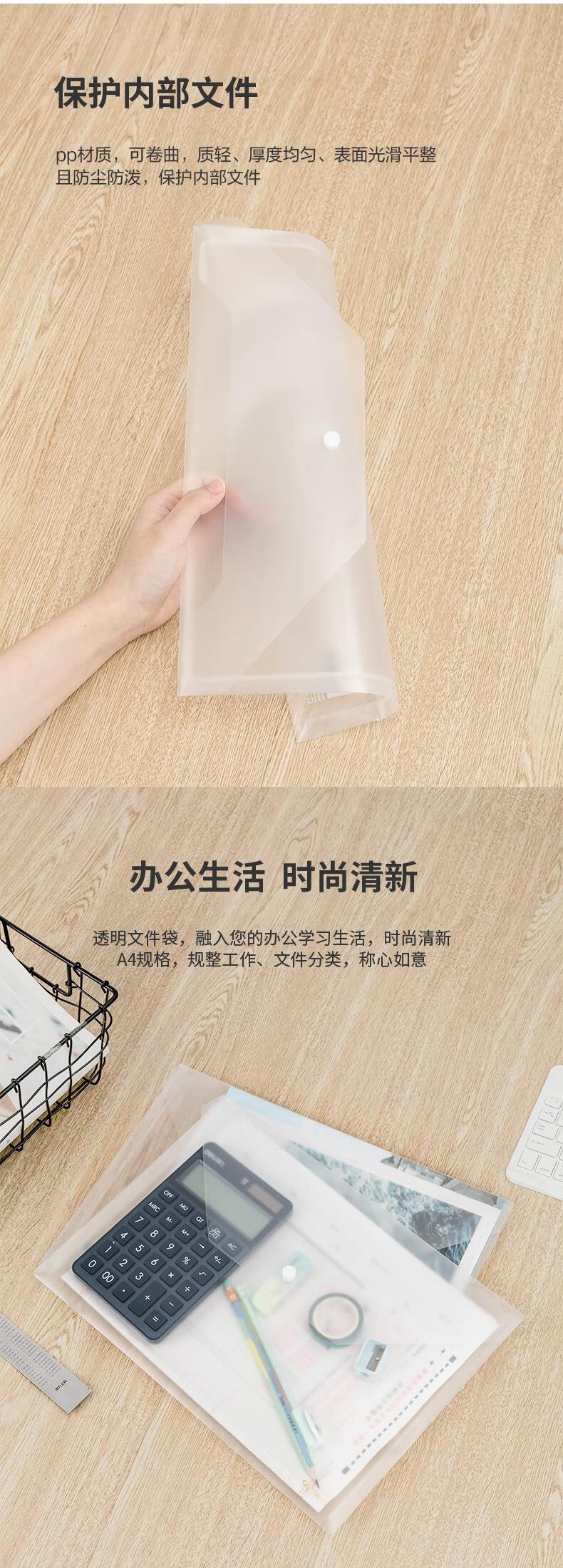 得力/deli 5501 文件袋 A4加厚透明文件袋 按扣资料袋 防水档案袋公文袋 财务票据试卷收纳