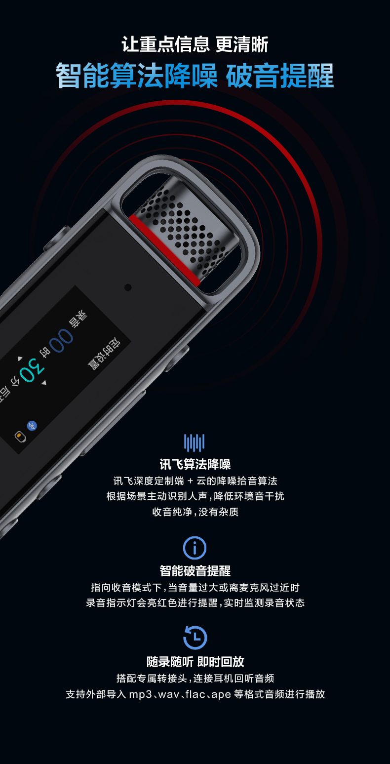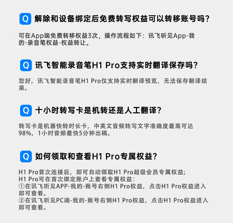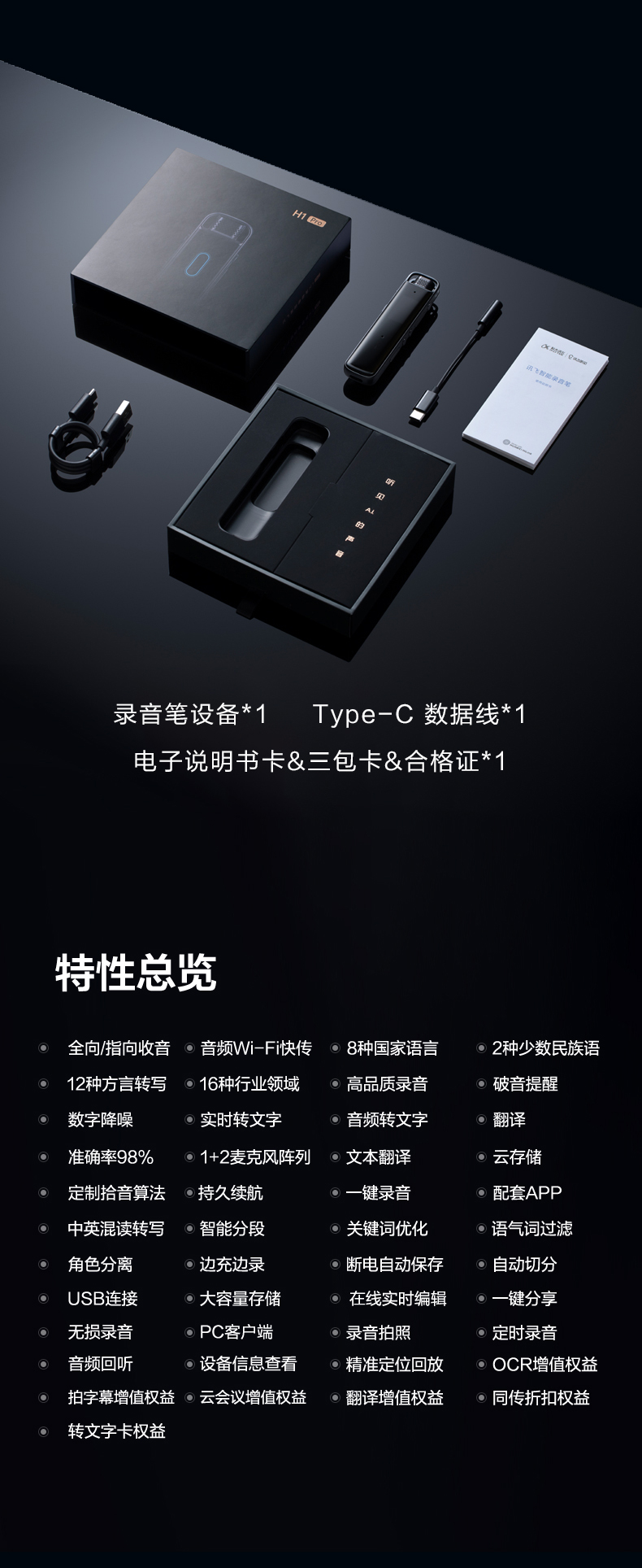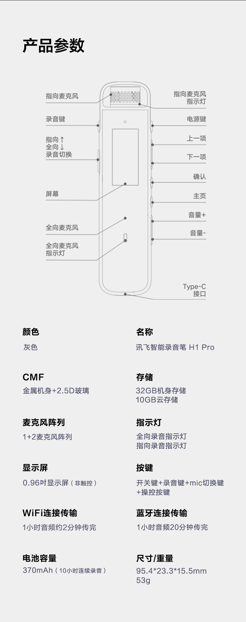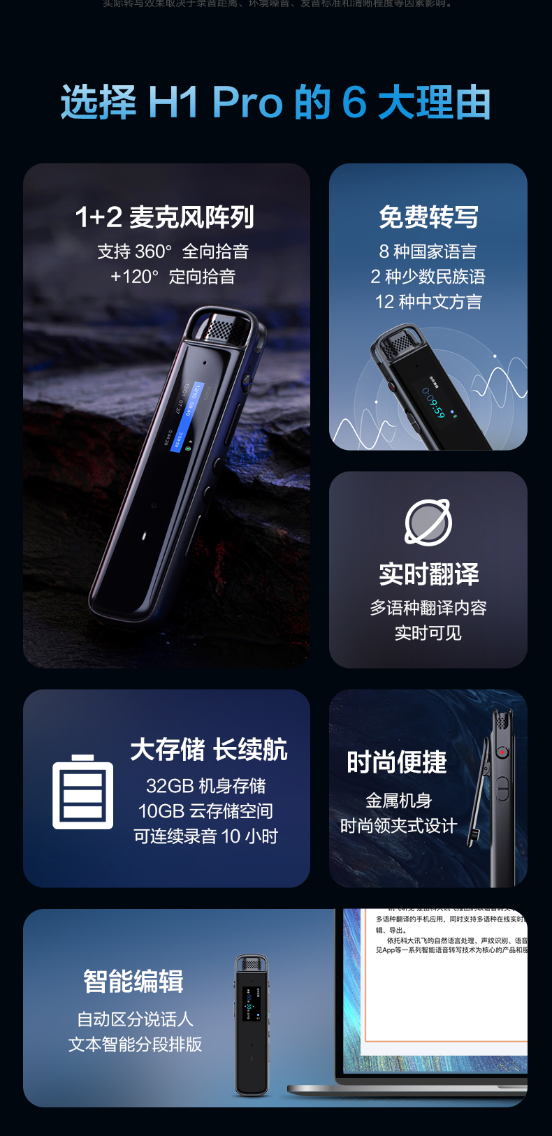 科大讯飞/iFLYTEK H1 Pro 录音笔 转写助手 32G 专业高清降噪 会议录音转文字 录音笔 实时翻译