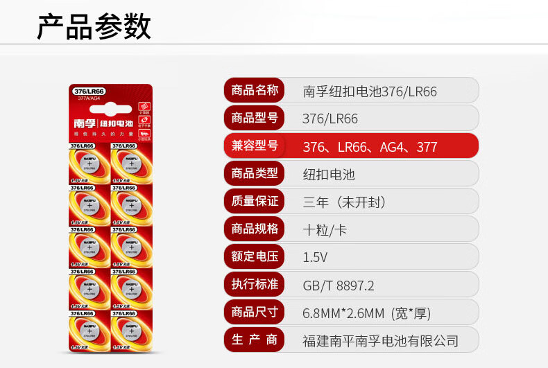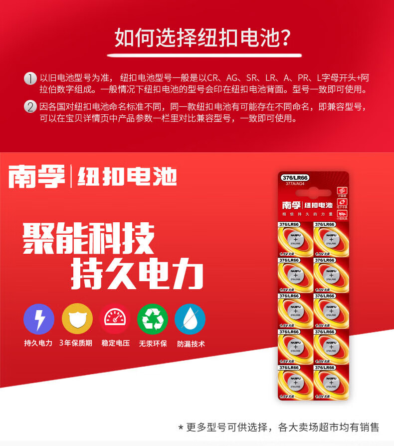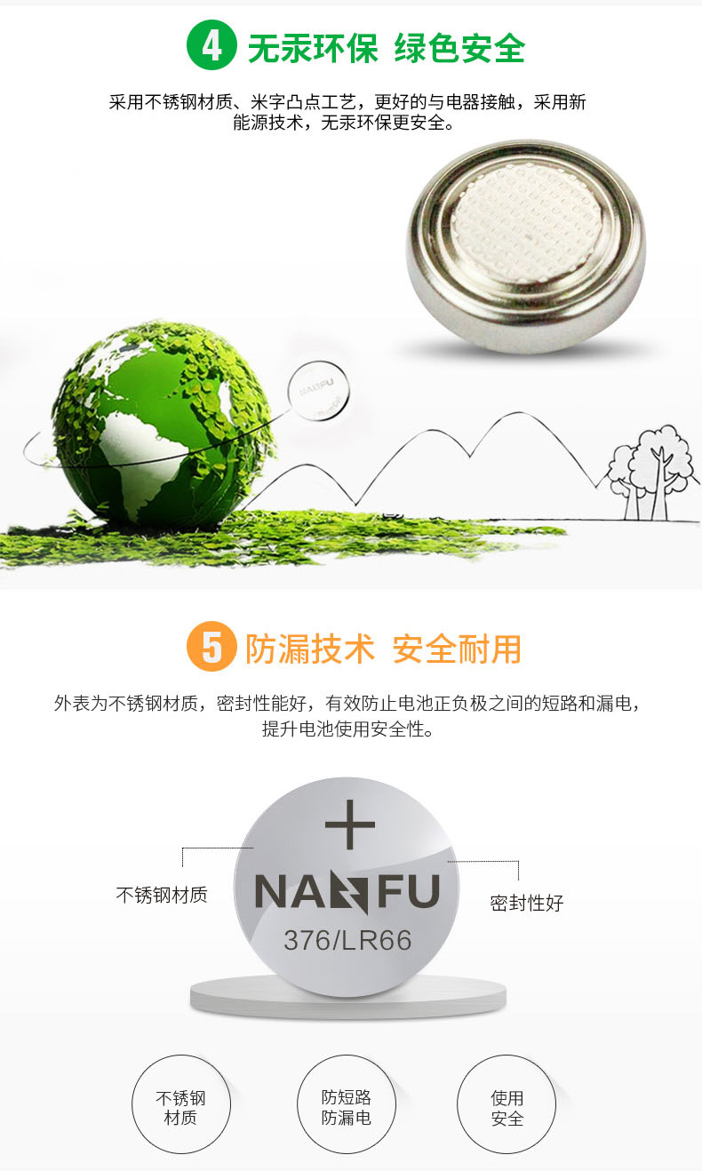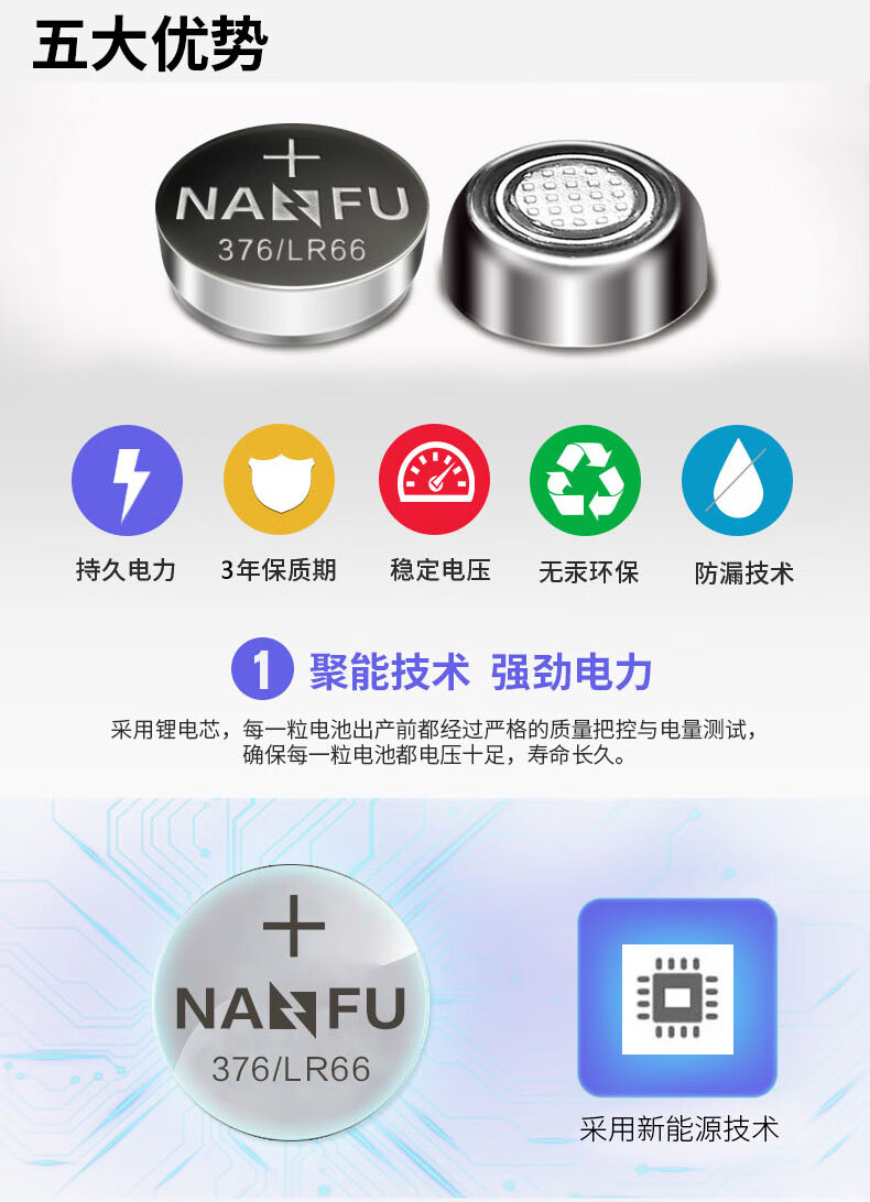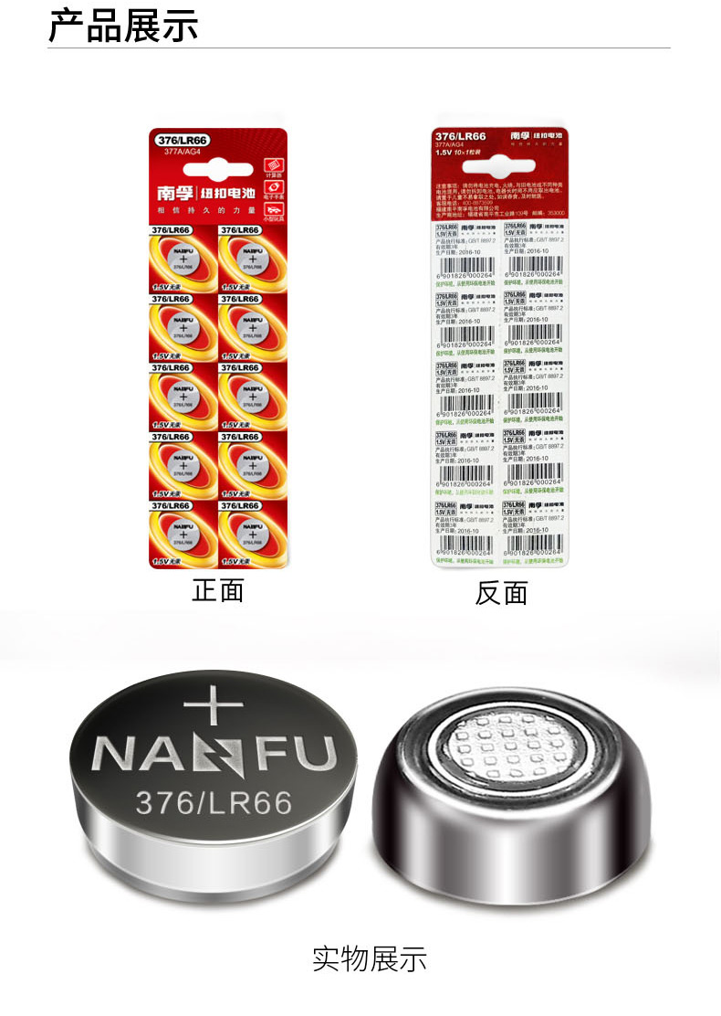 南孚/Nanfu SR-626SW 电池 南孚SR626SW纽扣电池1粒装 适用于石英表电子手表等