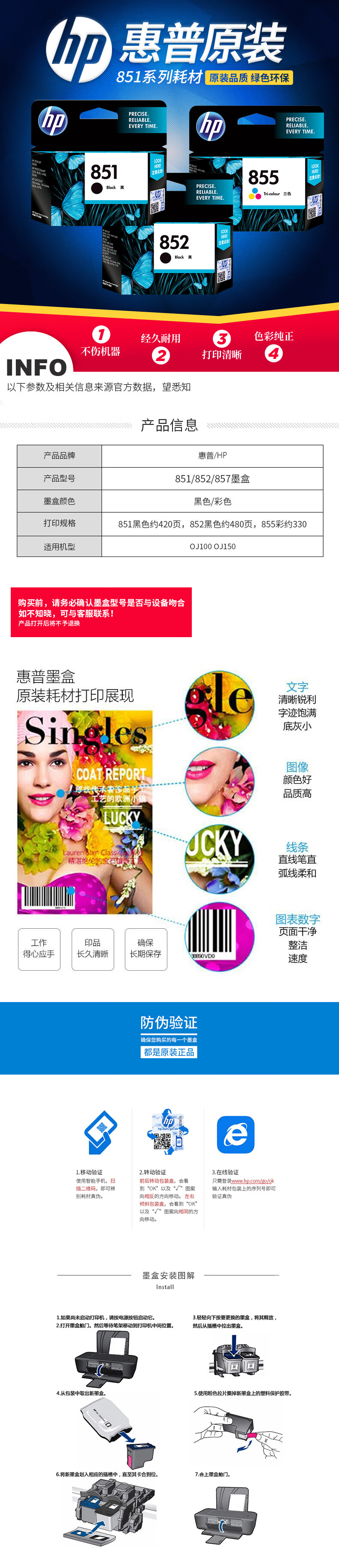 惠普/HP) 851 喷墨盒 原装 适用oj100 oj150 6318 2578打印机 851黑色墨盒(约420页)