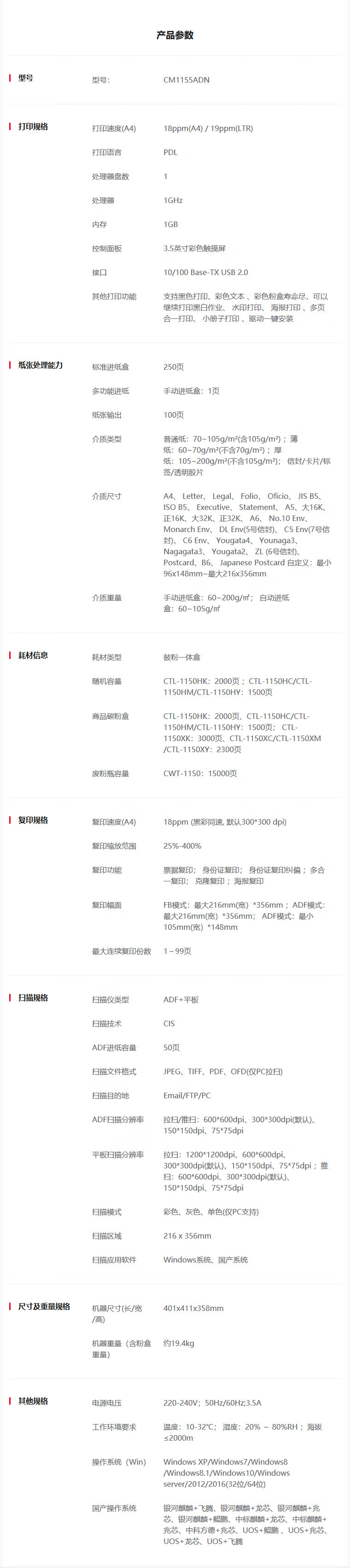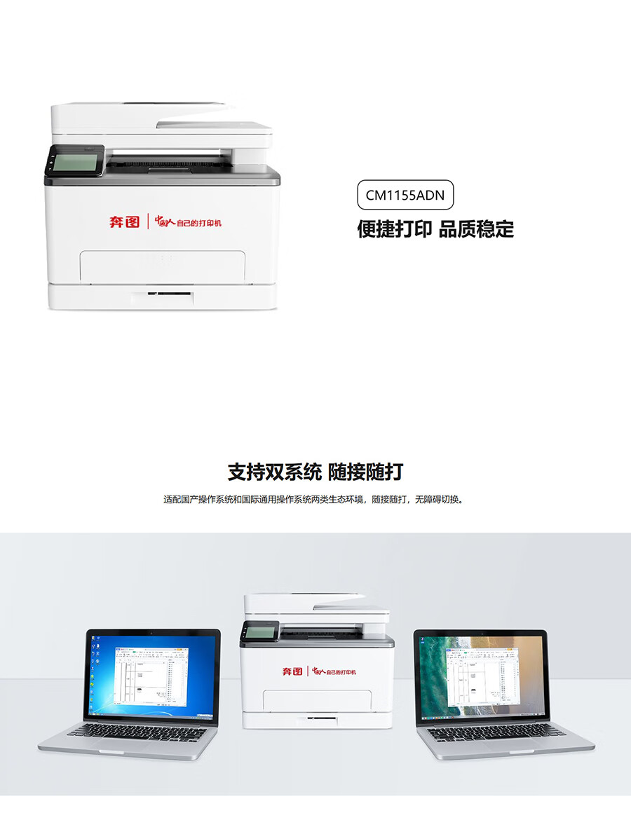 奔图/PANTUM CM1155ADN A4 彩色打印机 A4彩色激光多功能打印机 平板式扫描功能 打印复印扫描打印机