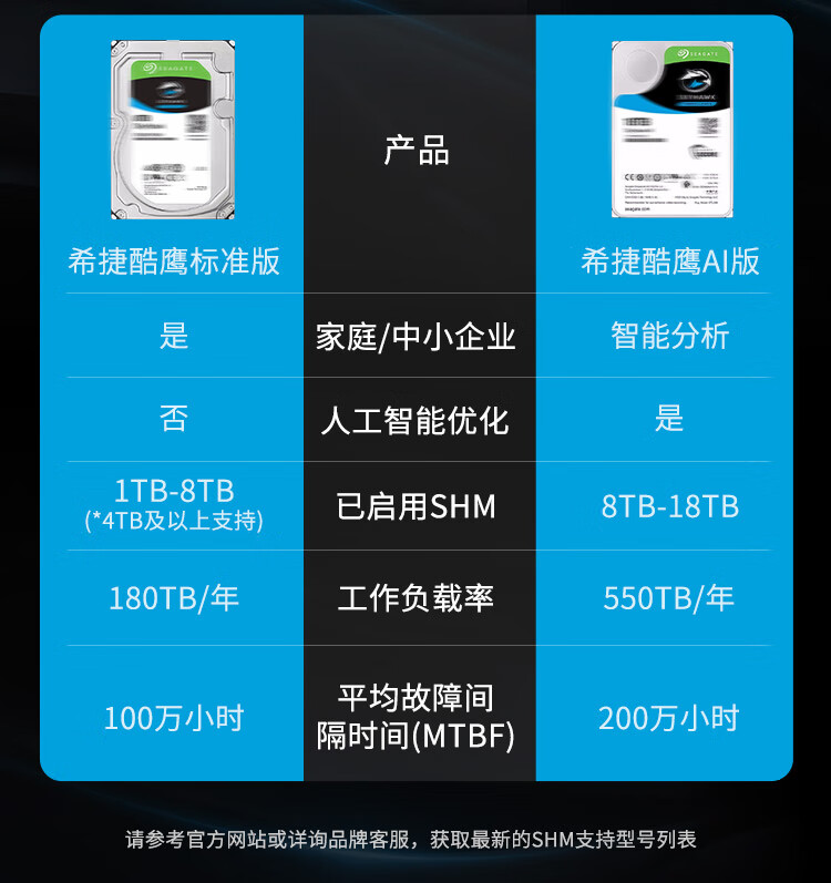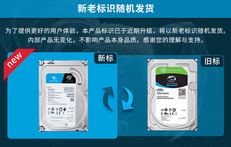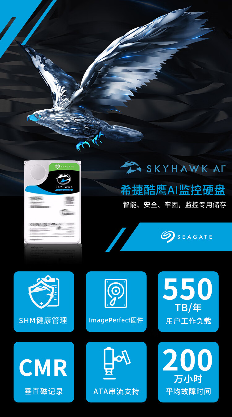 希捷/Seagate ST10000VE001 移动硬盘 监控硬盘 酷鹰AI系列 垂直硬盘 PMR CMR 机械硬盘 SATA接口 3.5英寸硬盘 10TB