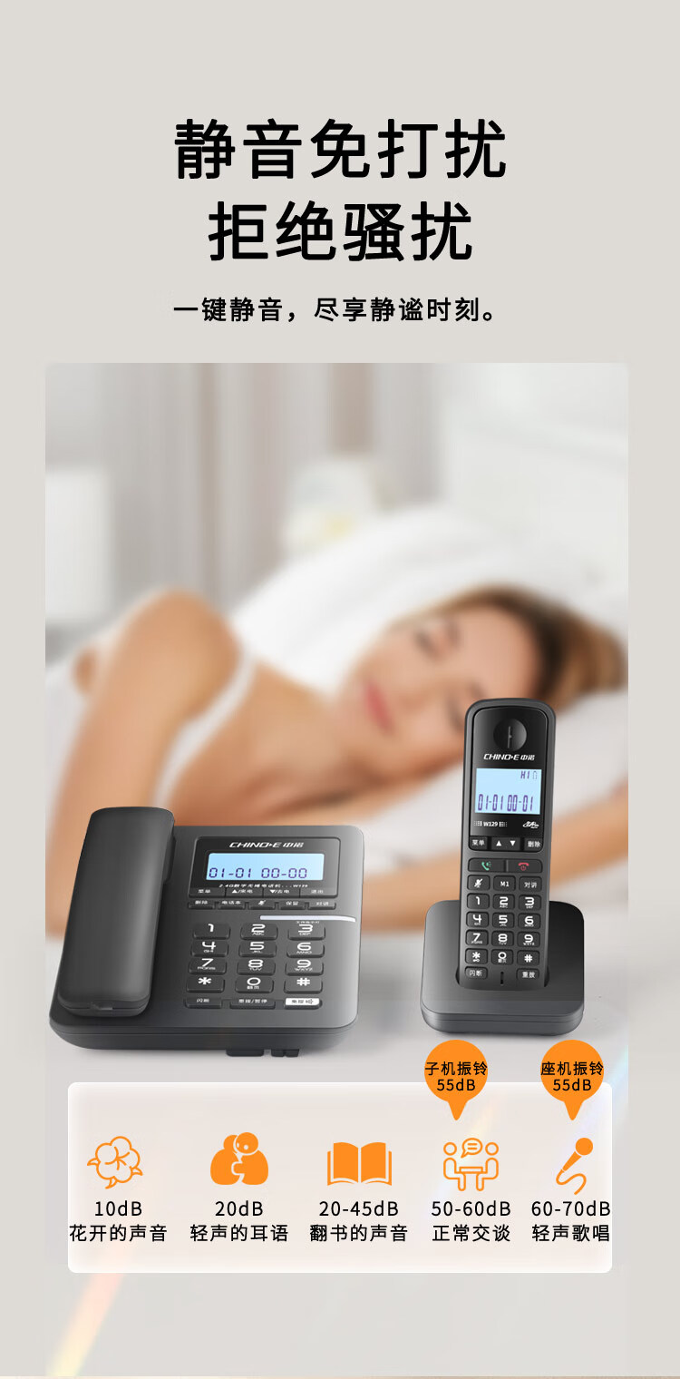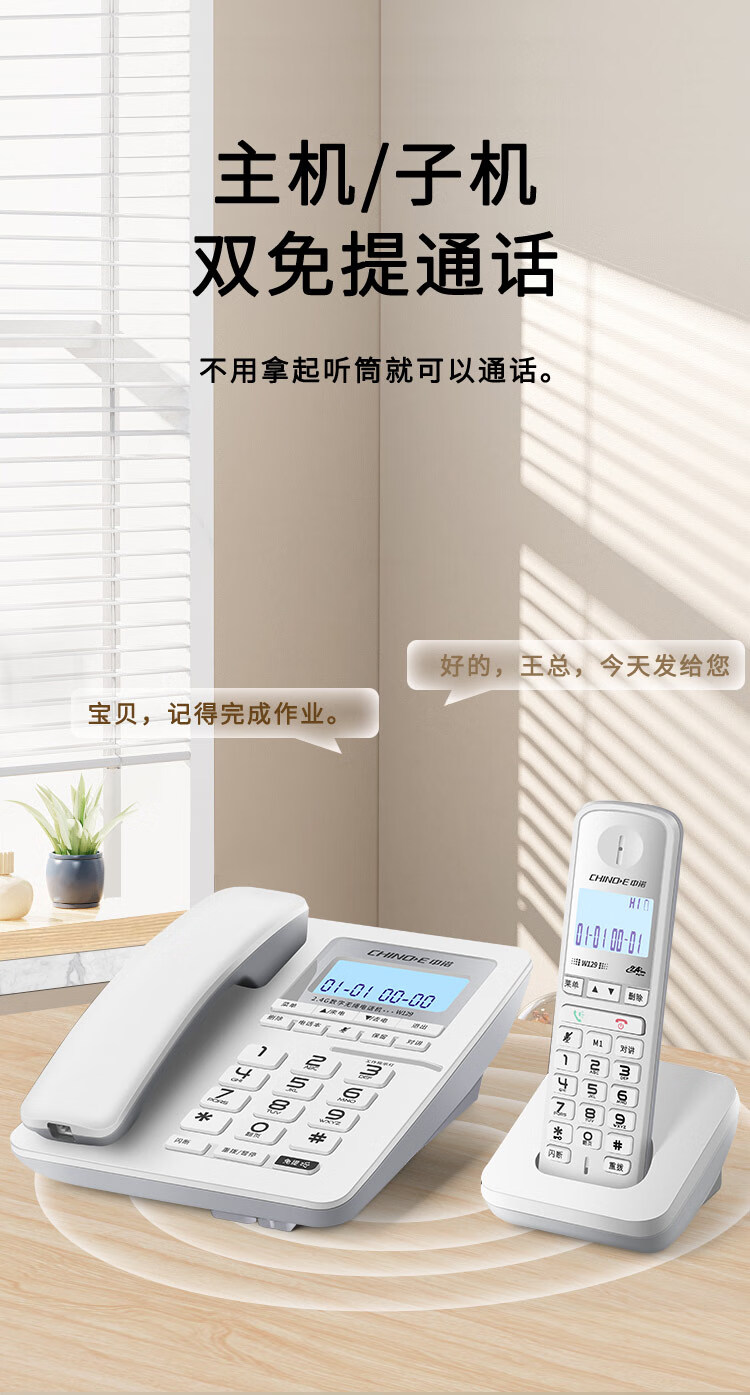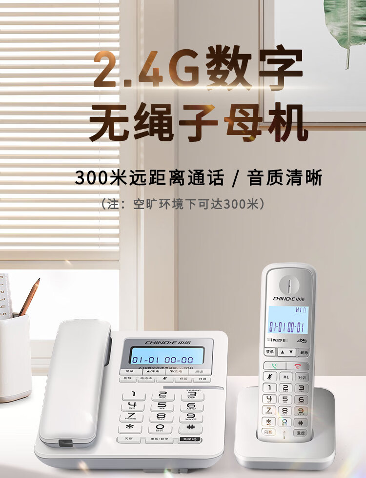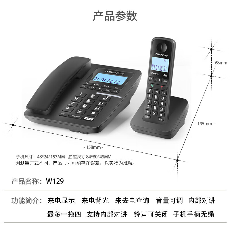 中诺/CHINO-E W129 普通电话机 中诺数字无绳电话机无线座机子母机一拖一套装黑色