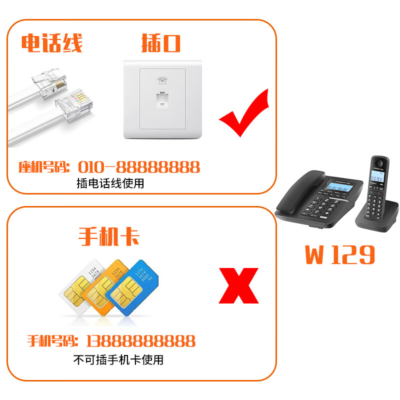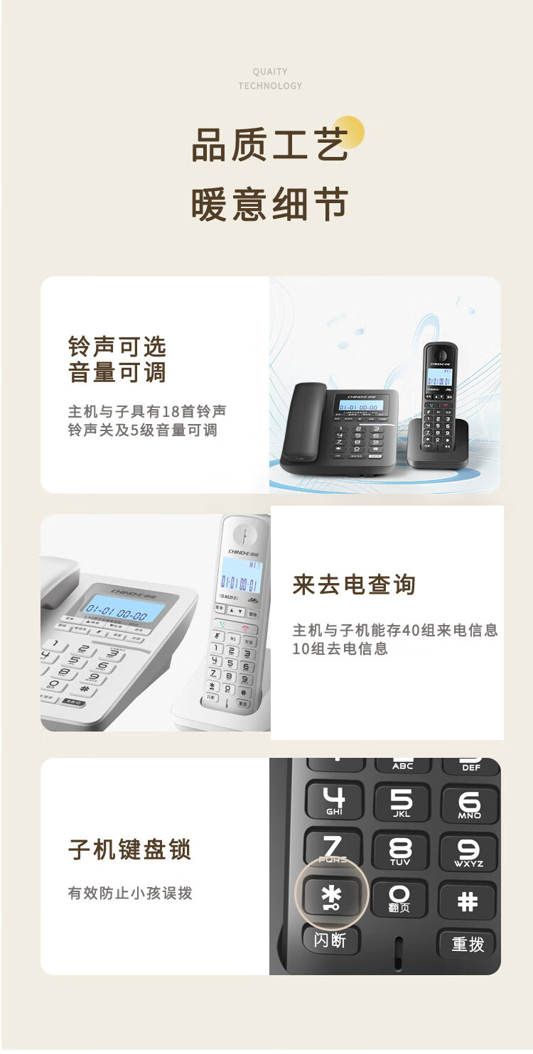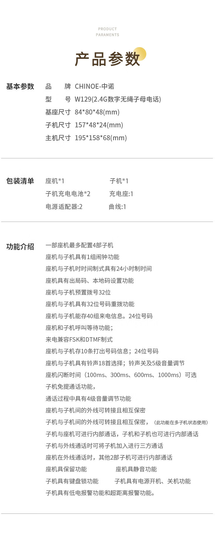 中诺/CHINO-E W129 普通电话机 中诺数字无绳电话机无线座机子母机一拖一套装黑色
