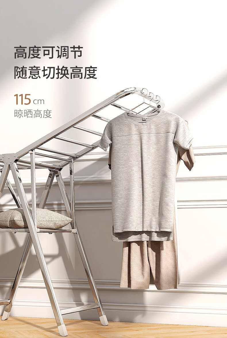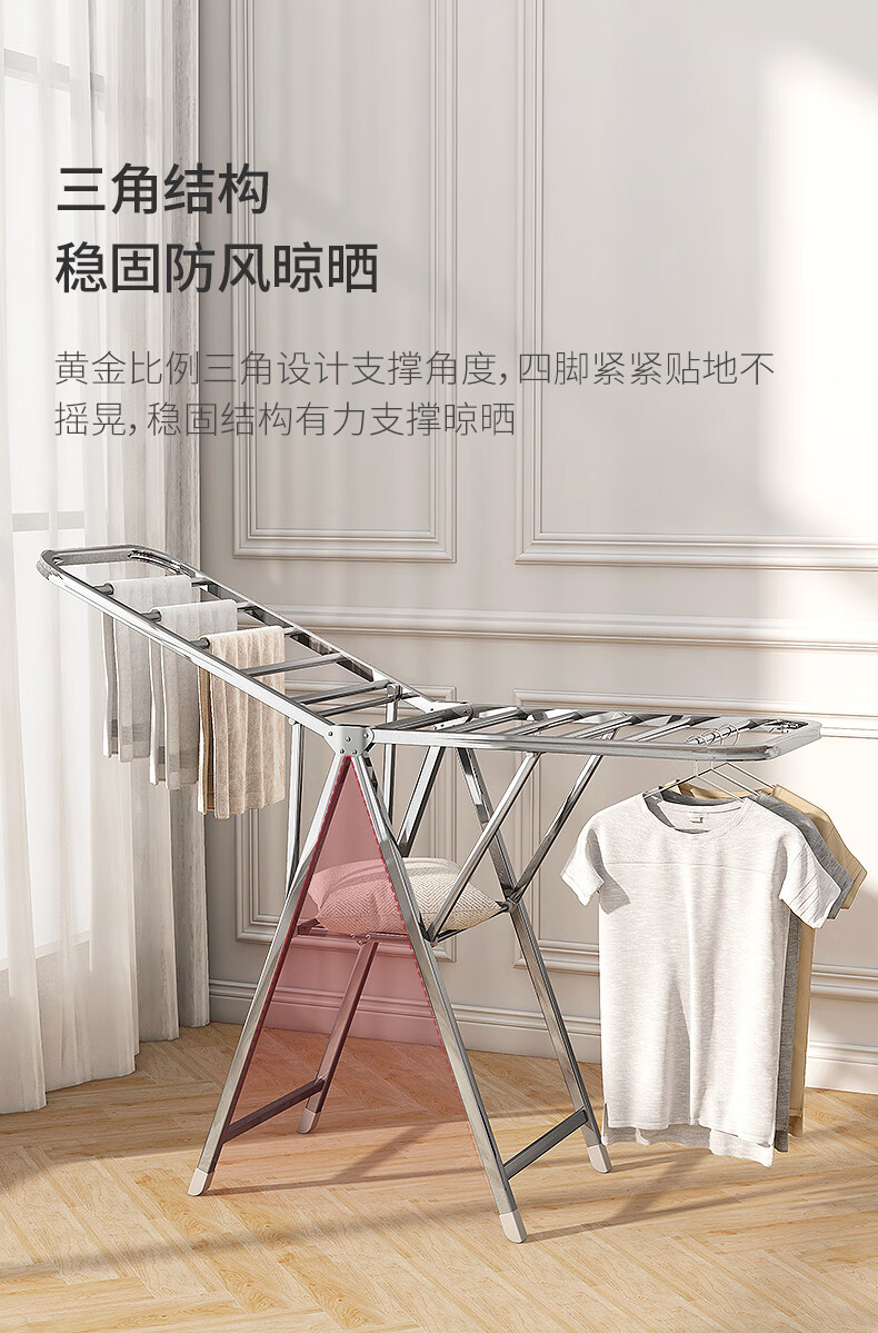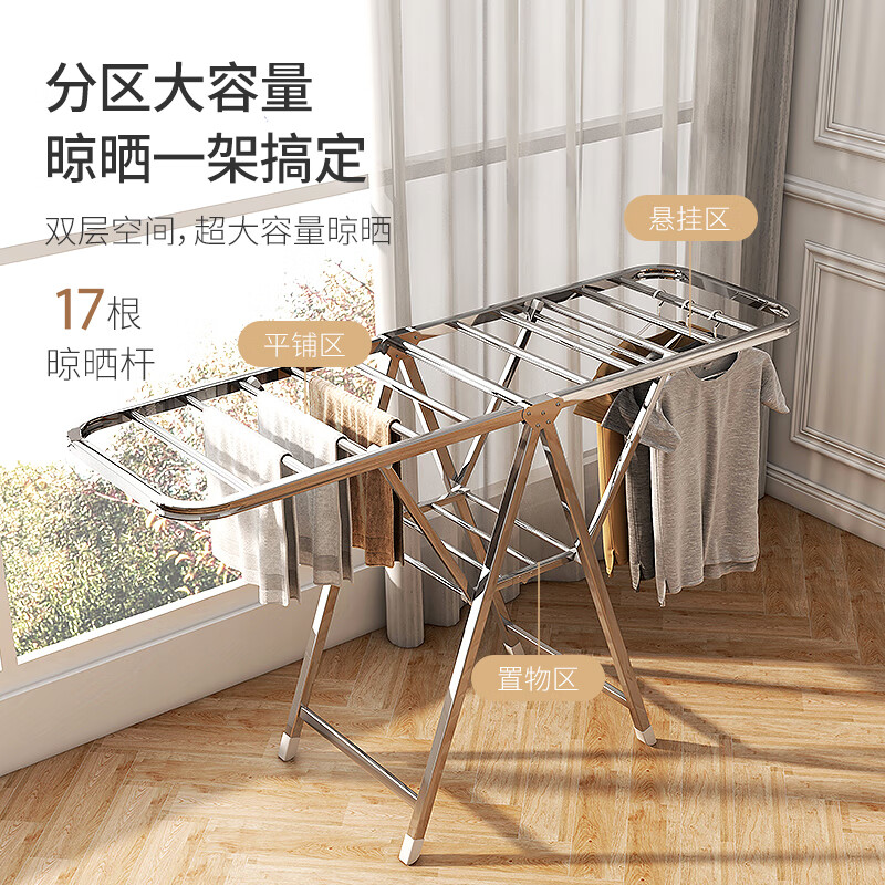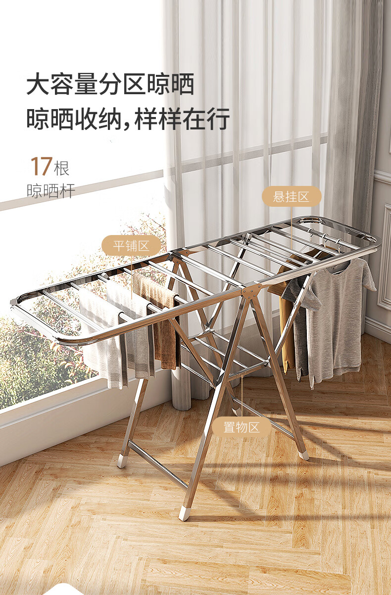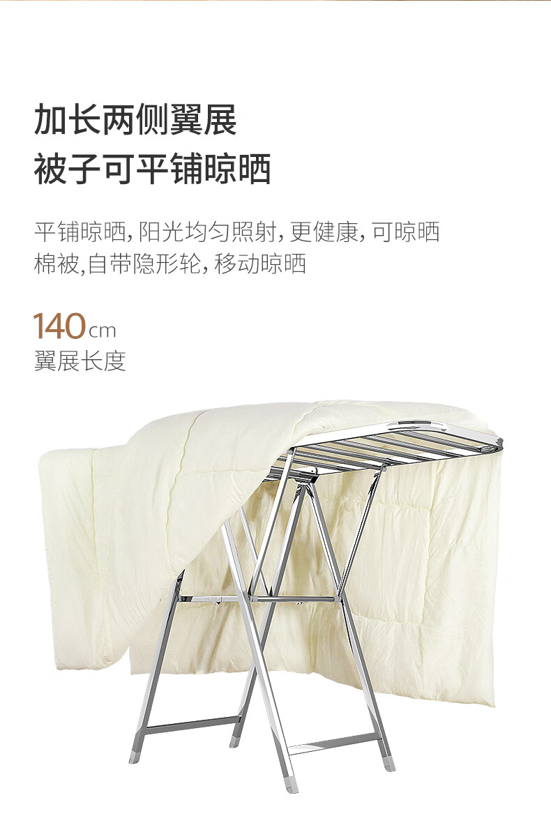 稳纳 L6509 衣架 晾衣架落地衣架折叠挂衣架晒被架家用不锈钢晒衣服架翼型