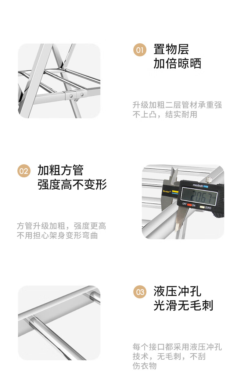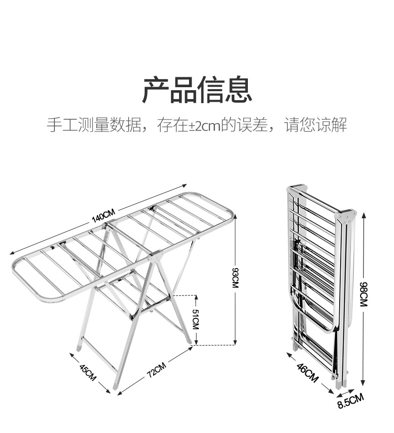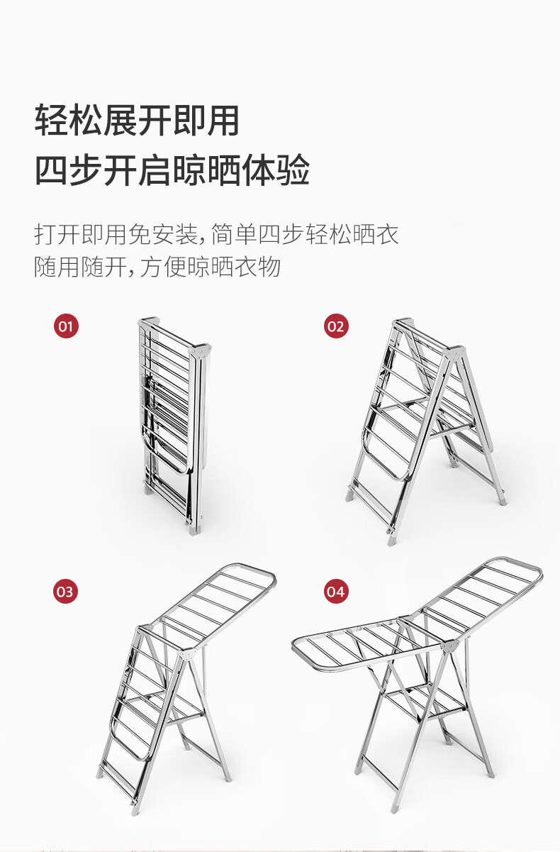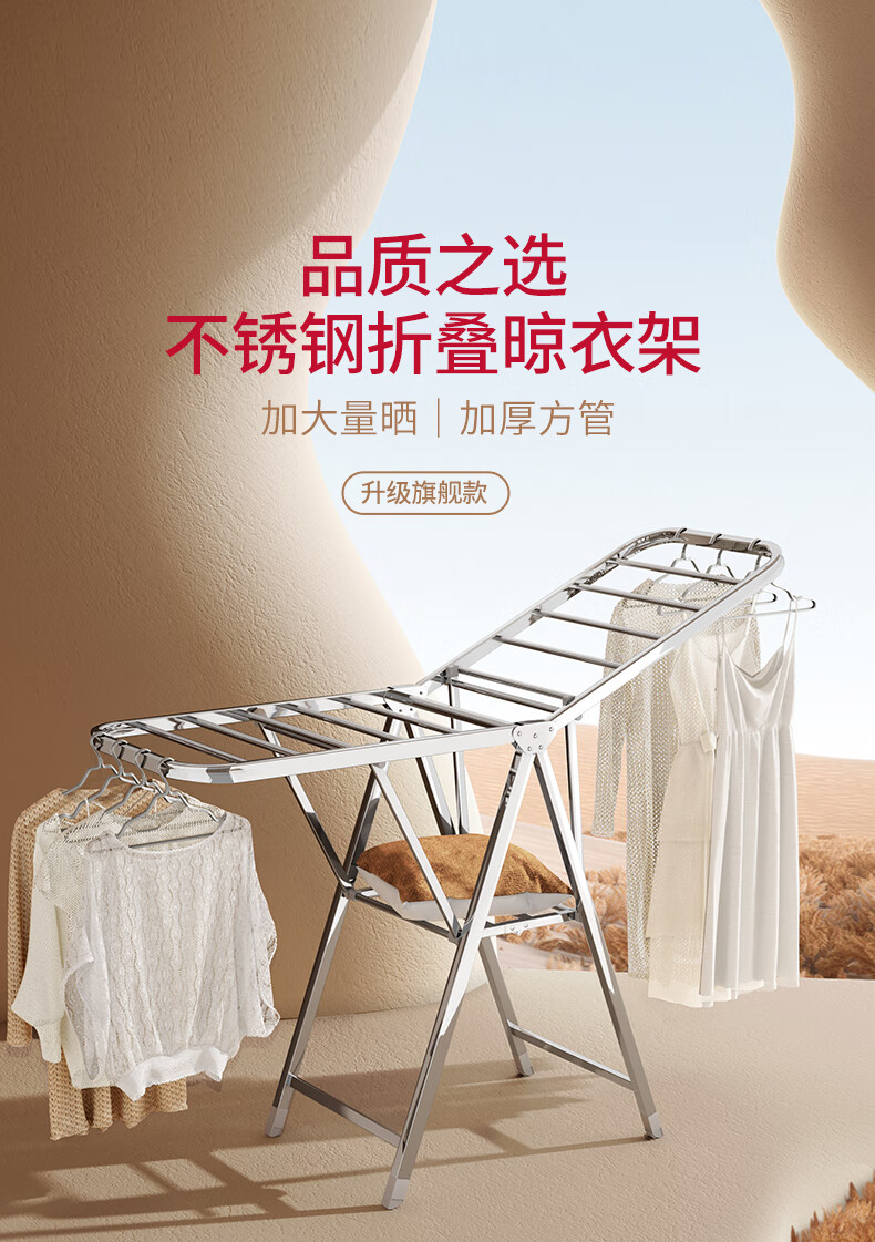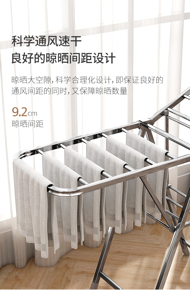 稳纳 L6509 衣架 晾衣架落地衣架折叠挂衣架晒被架家用不锈钢晒衣服架翼型