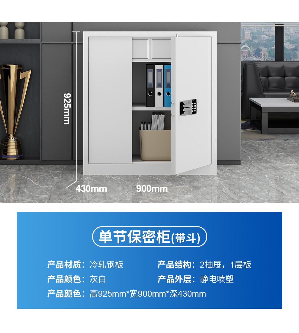 龙宝LB-M103 保密柜 小型文件柜铁皮柜密码柜指纹国保锁加厚带抽屉桌下办公柜矮柜桌边柜财务办公室保险柜 单节国保锁带抽屉灰白色