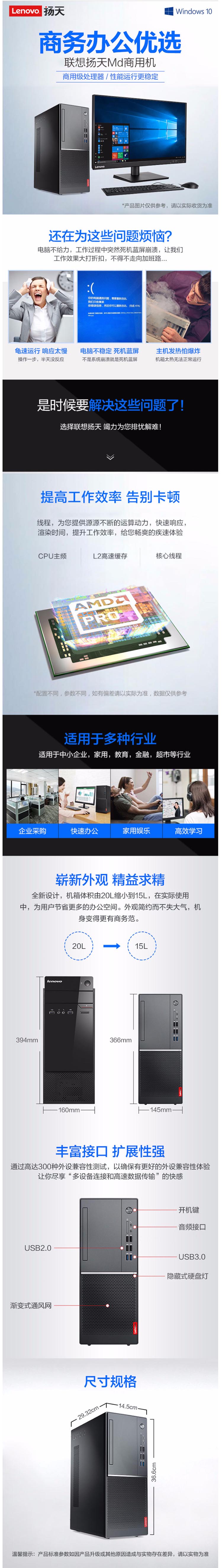联想 扬天M4600t I3 10100 8G 1T 无光 集成 win10 21.5 显示器