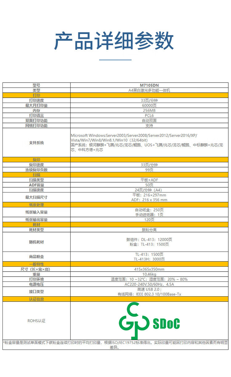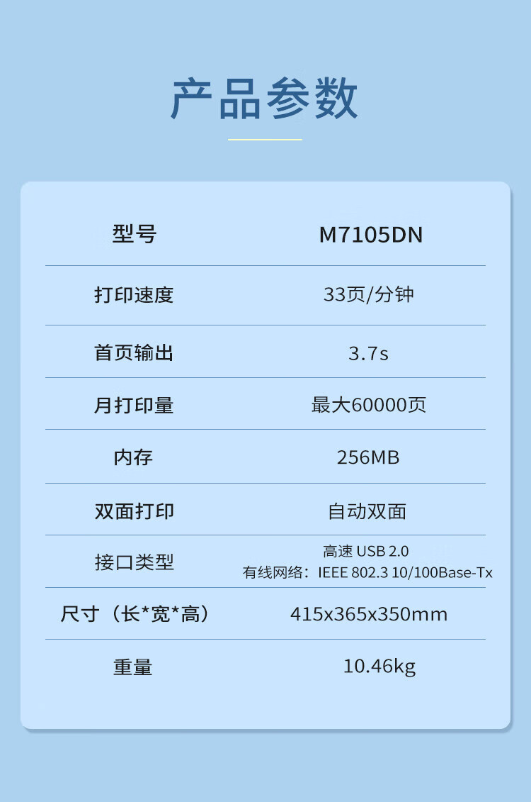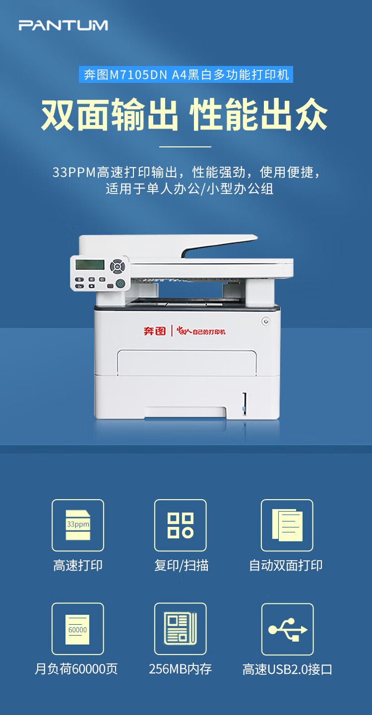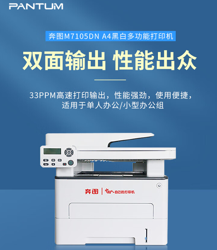 奔图/PANTUM M7105DN A4 黑白打印机 打印/复印/扫描 自动双面 USB/有线打印 30ppm