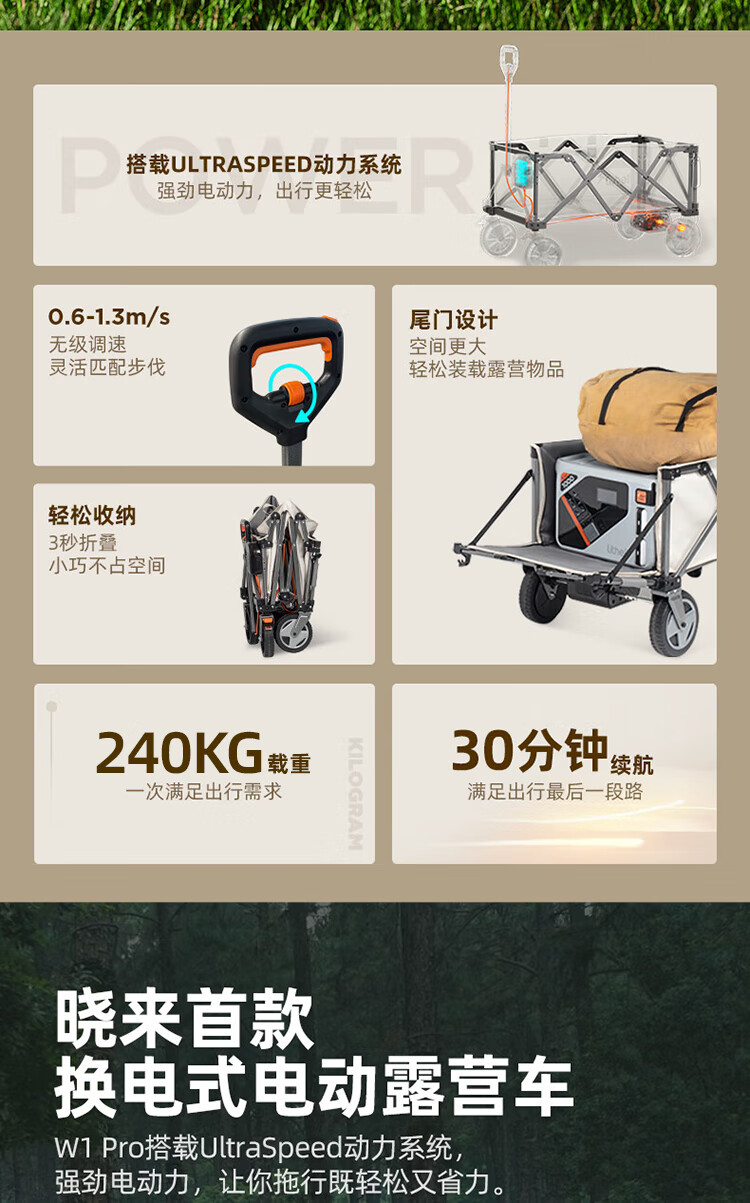 Little w1 pro 手推车 晓来多功能可折叠便携款大儿童可坐电动露营车野餐 电动手推车+U20电池