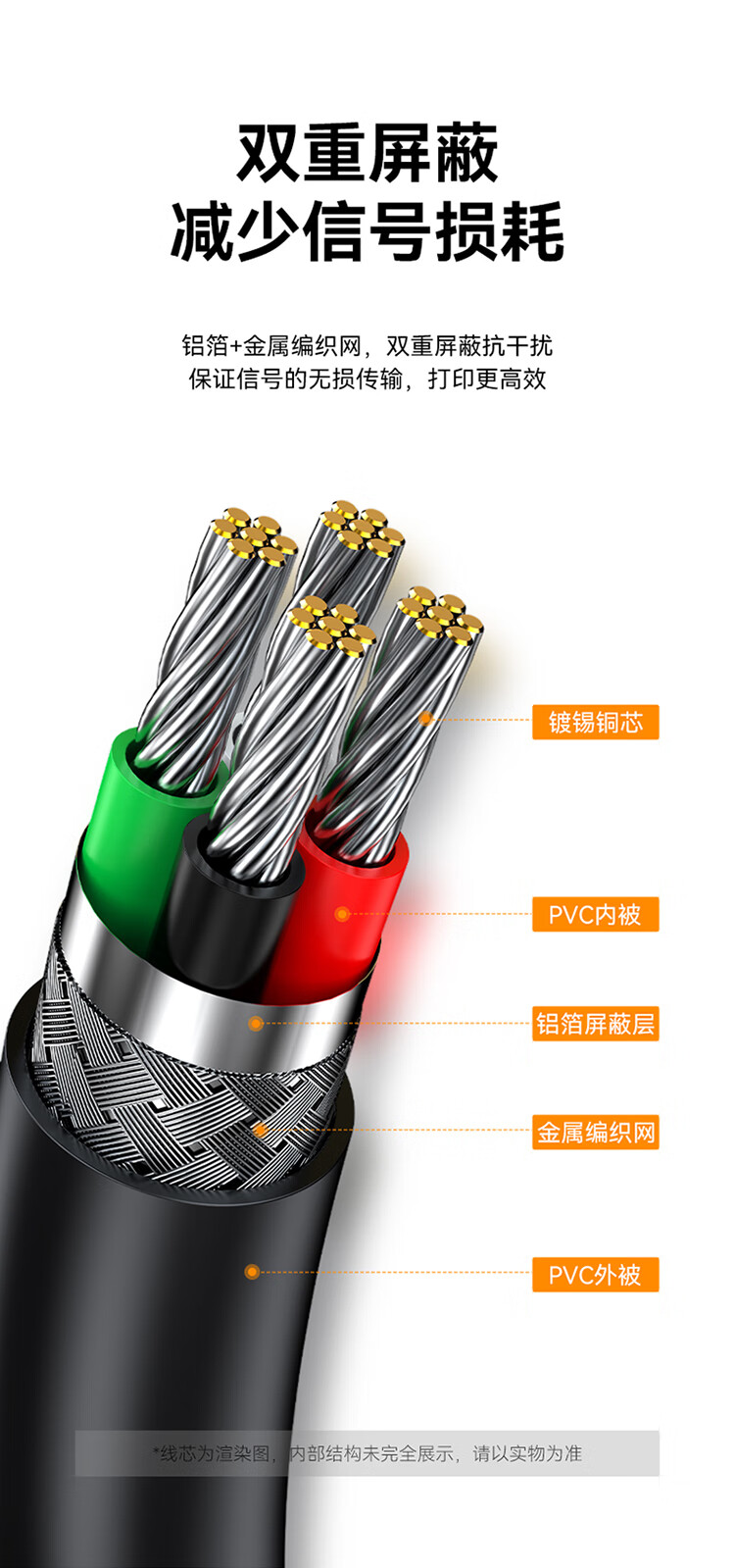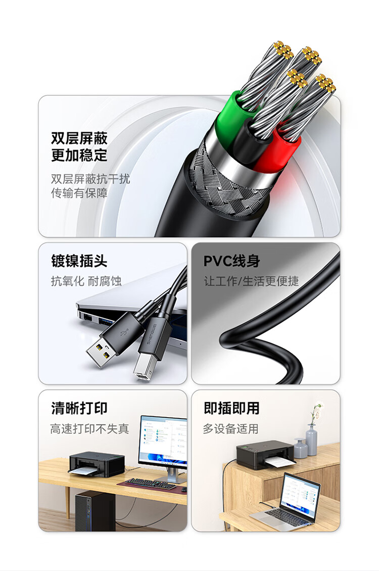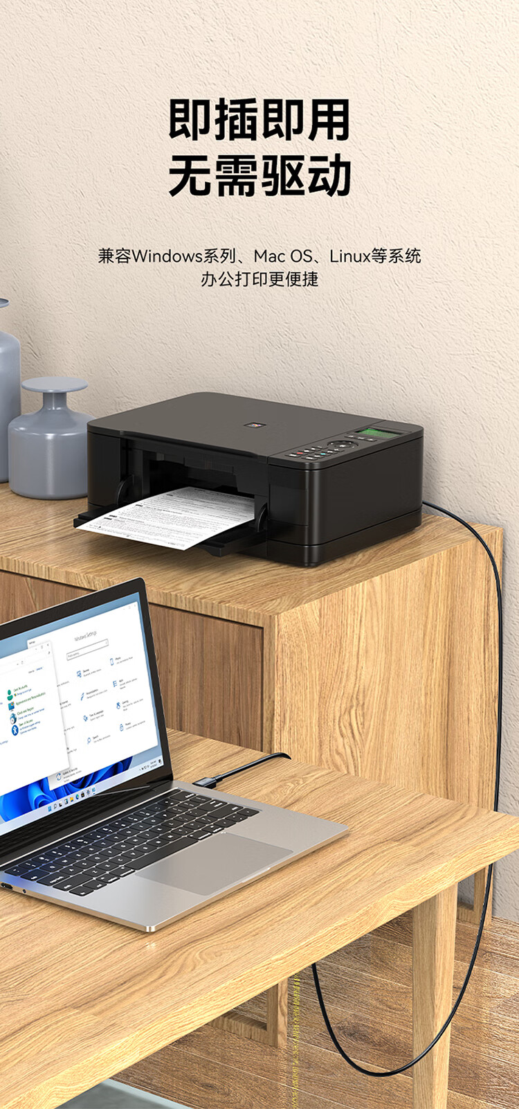 胜为/shengwei AUB1050G 数据线 打印机数据线USB2.0高速打印线电源接口连接线、长度5米