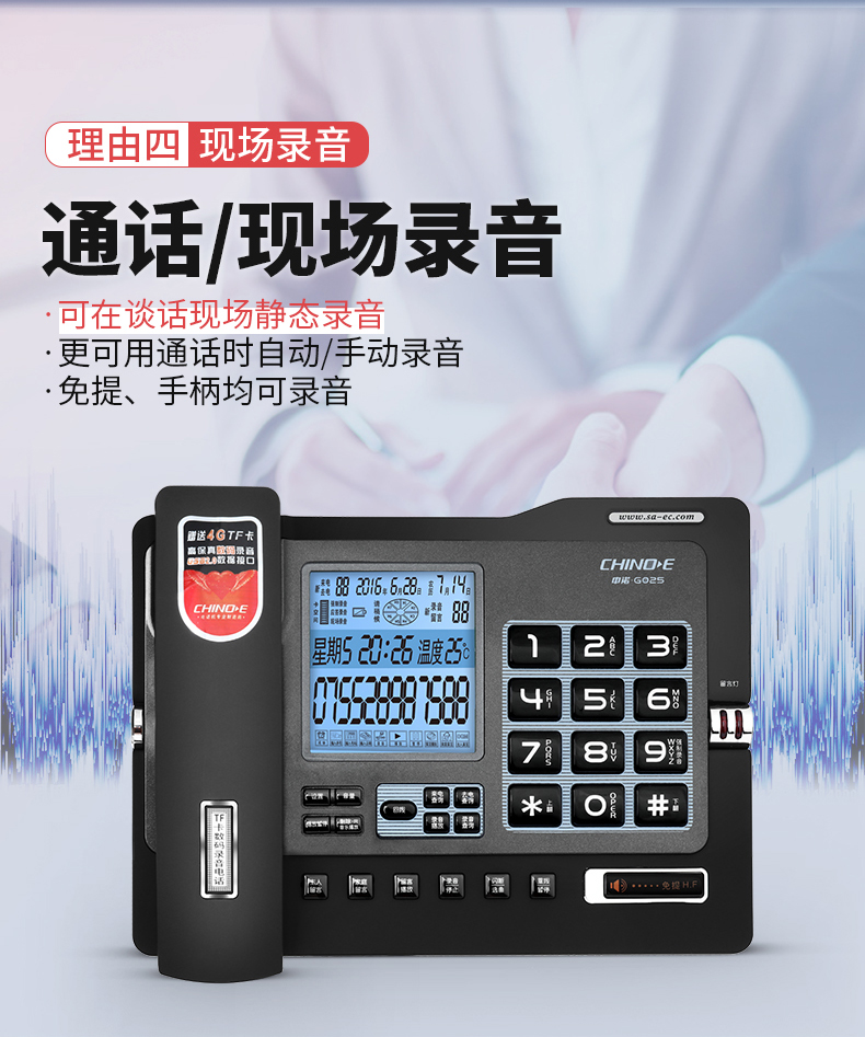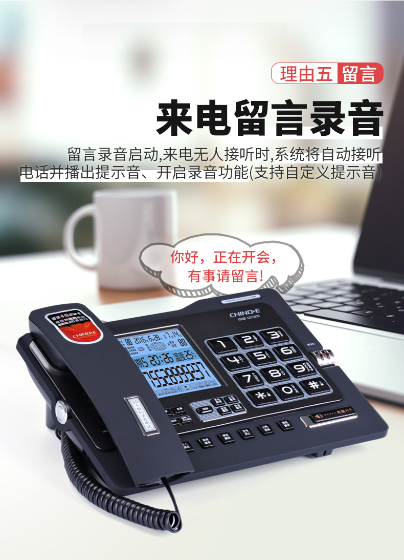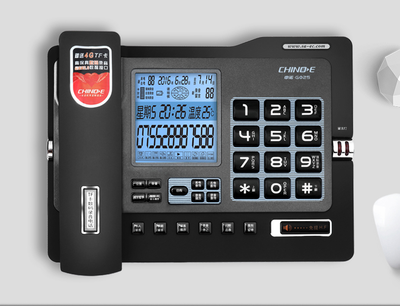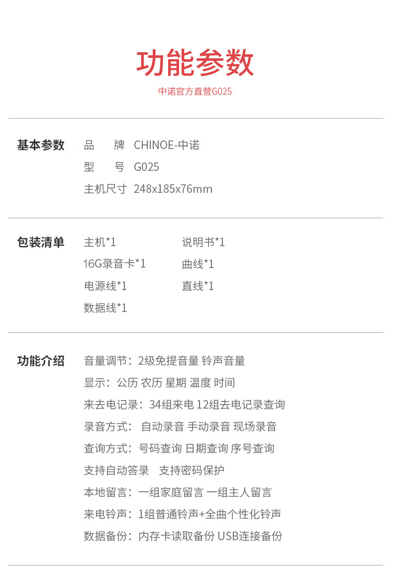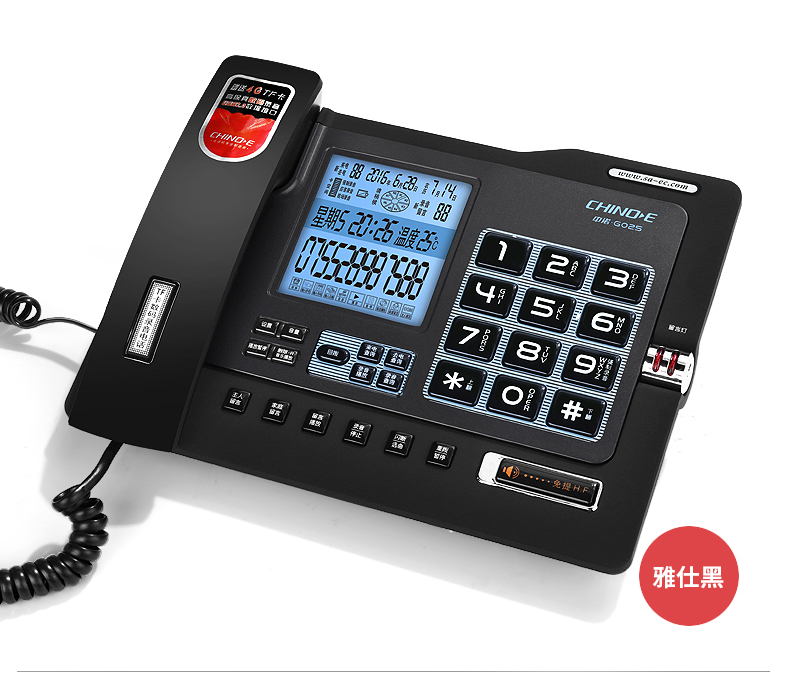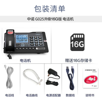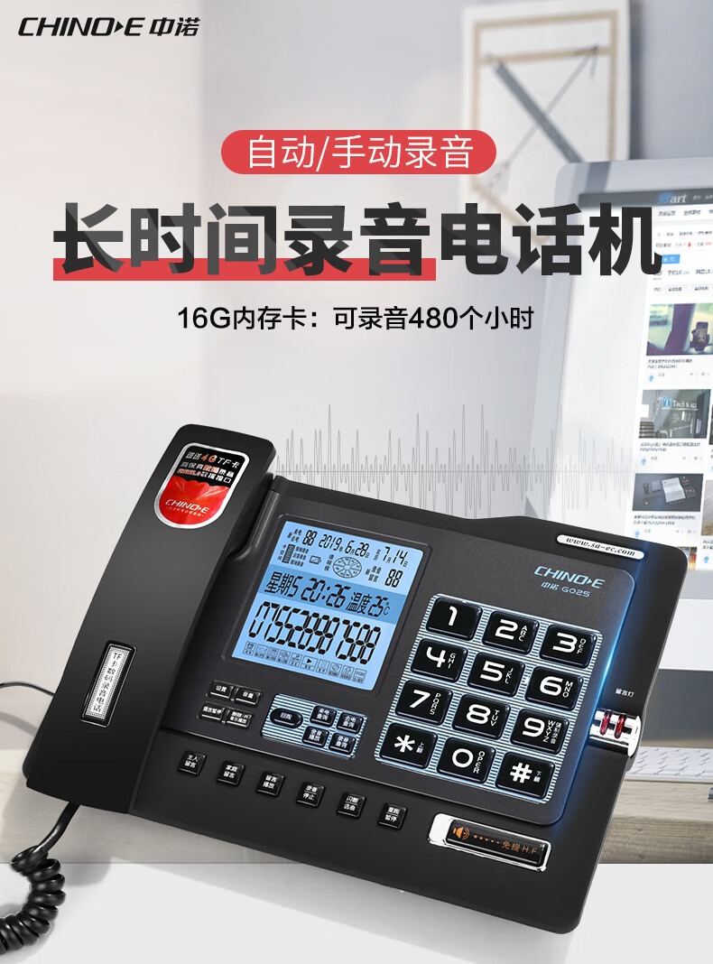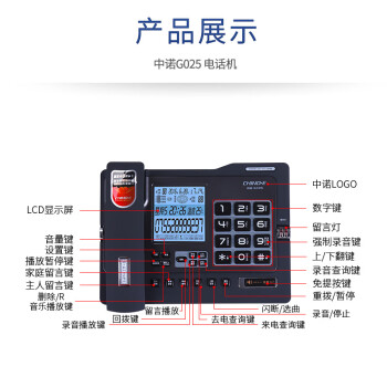 中诺/CHINO-E G025 普通电话机 录音电话机座机可录音480小时智能自动录音办公家用固定电话留言黑色