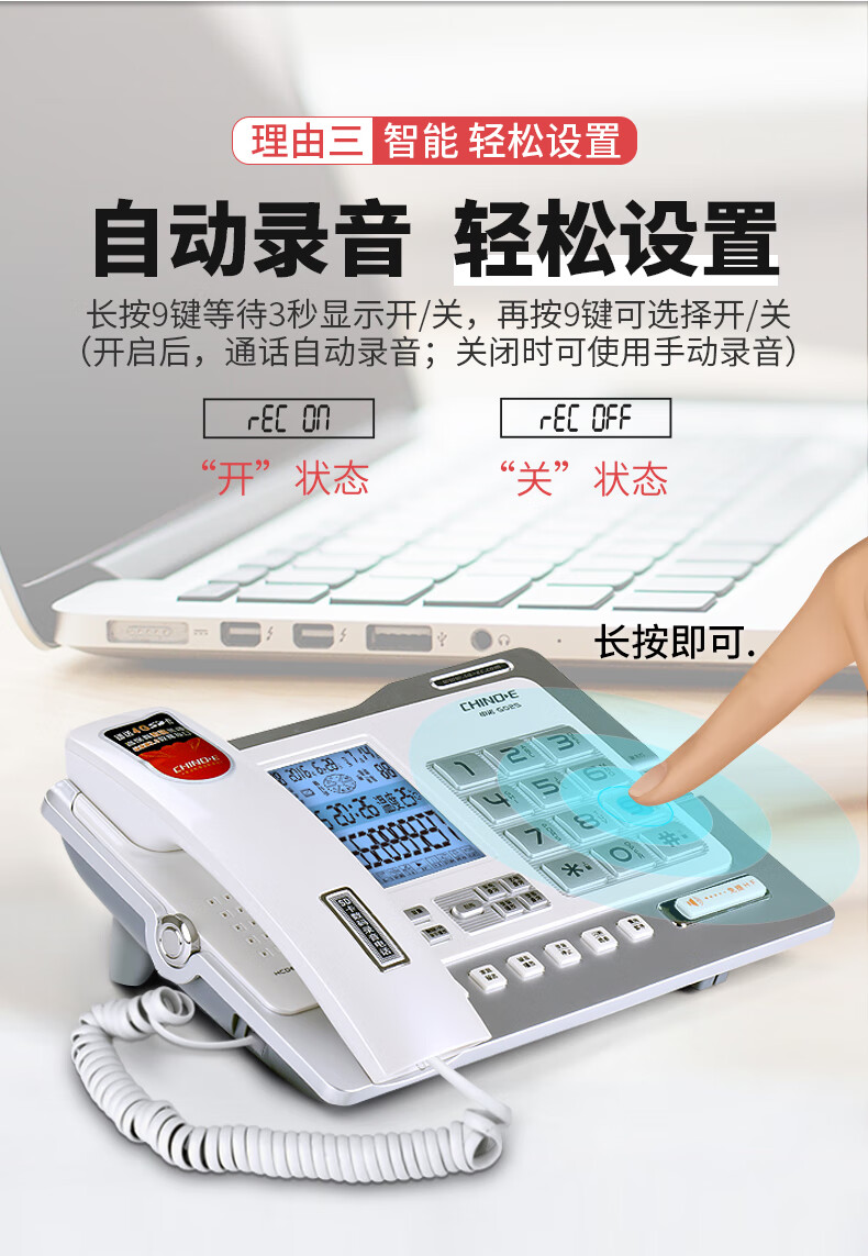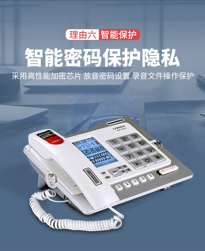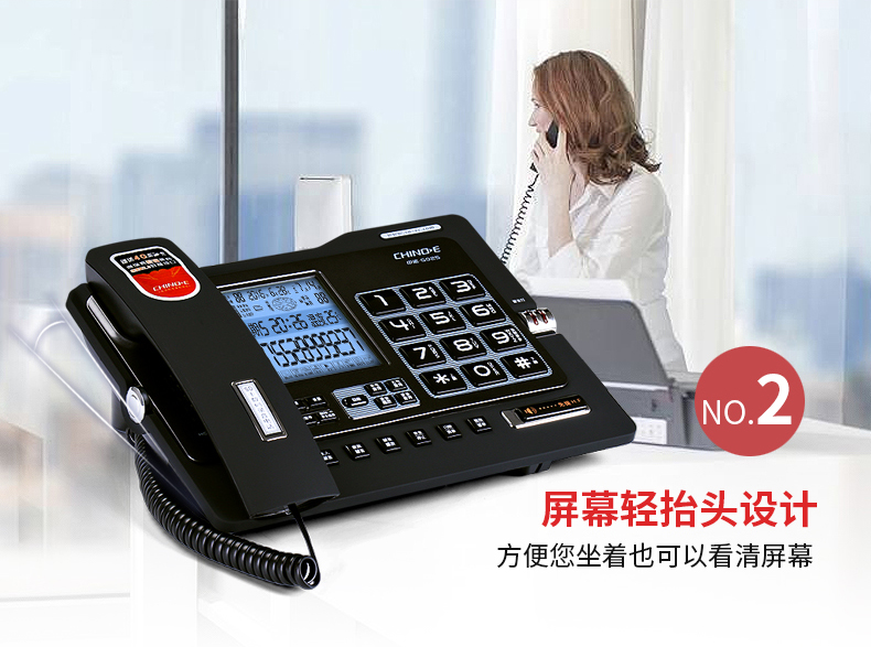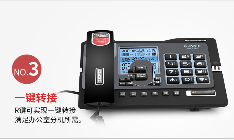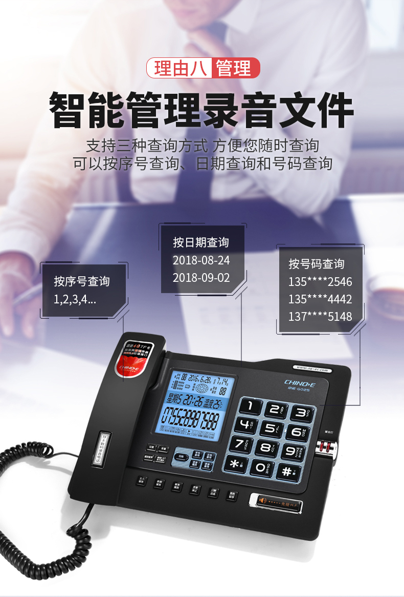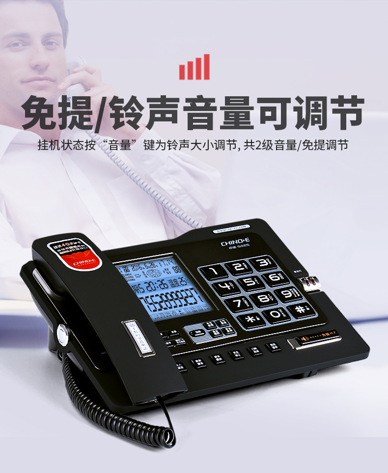 中诺/CHINO-E G025 普通电话机 录音电话机座机可录音480小时智能自动录音办公家用固定电话留言黑色