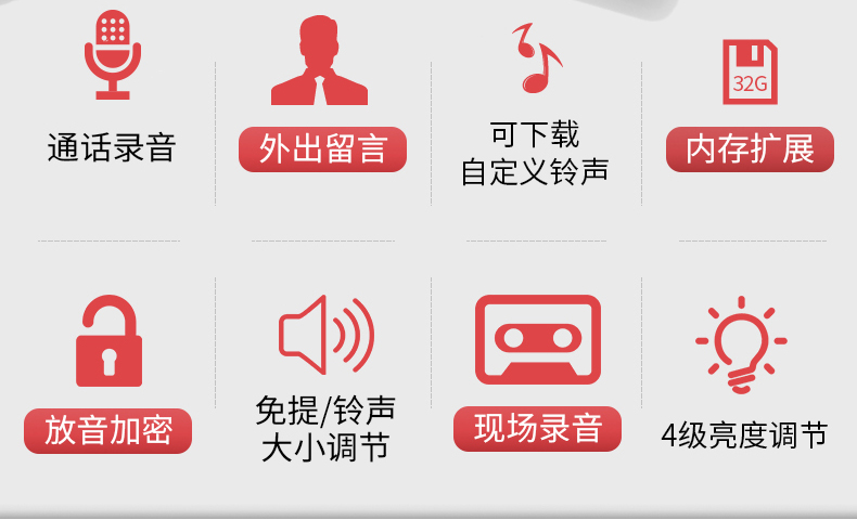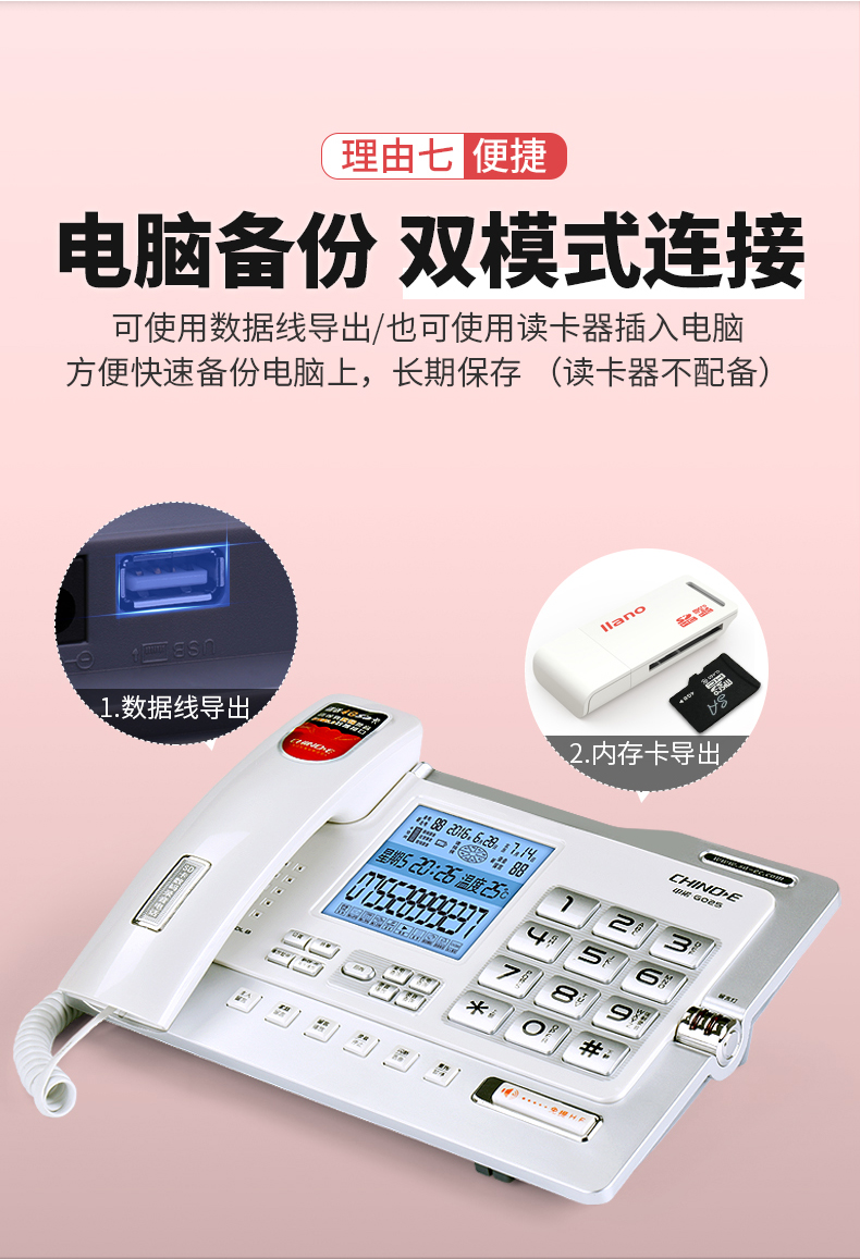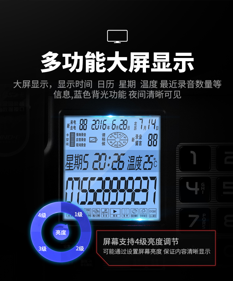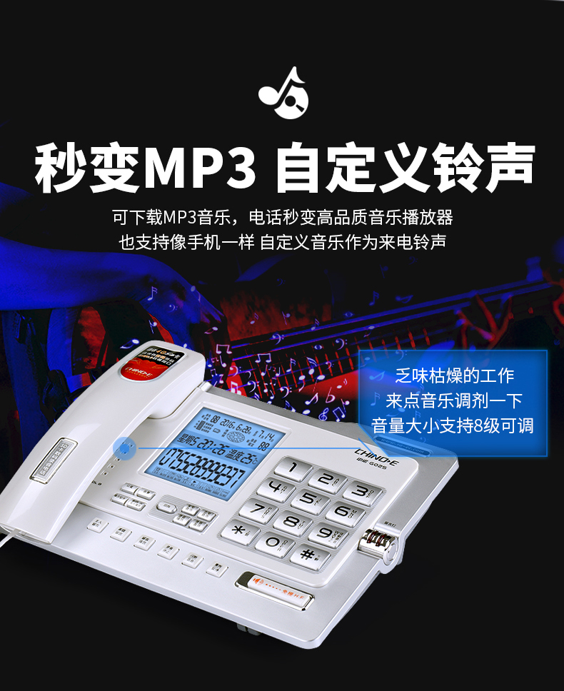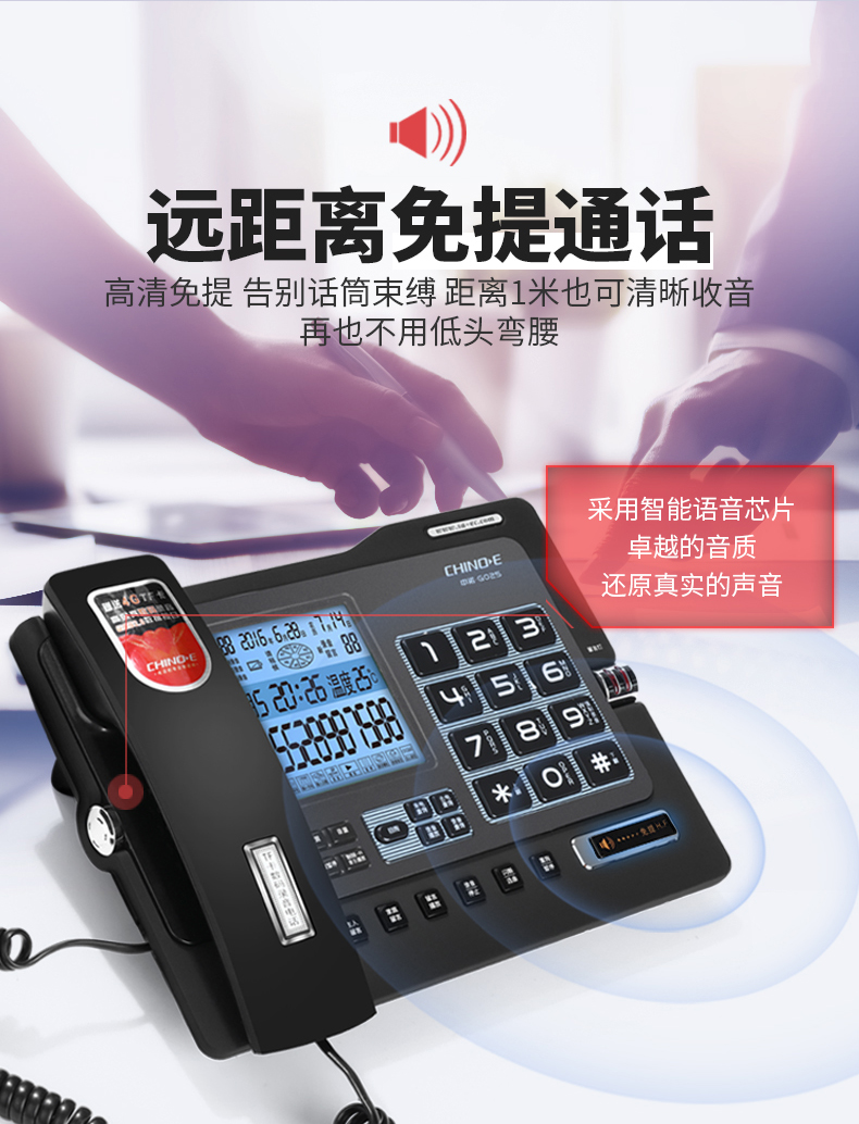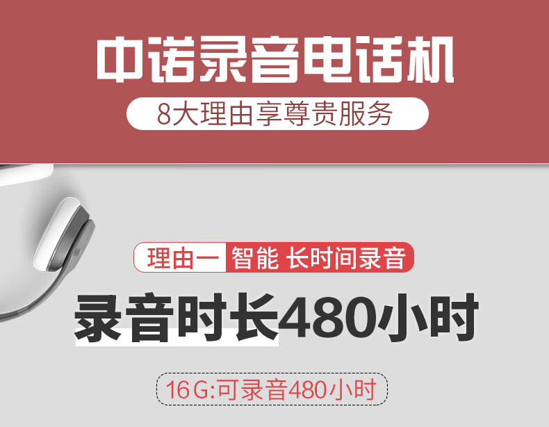 中诺/CHINO-E G025 普通电话机 录音电话机座机可录音480小时智能自动录音办公家用固定电话留言黑色