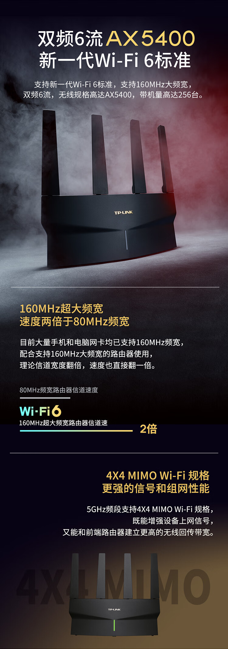 普联/TP-LINK AX5400 路由器 千兆无线路由器 WiFi6 5G双频高速网