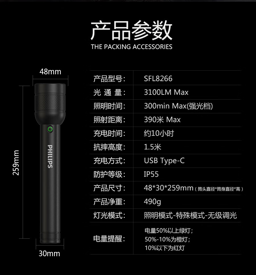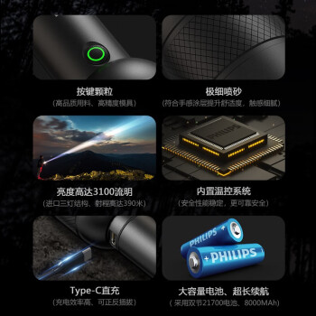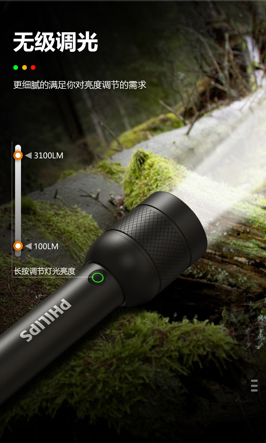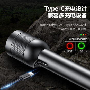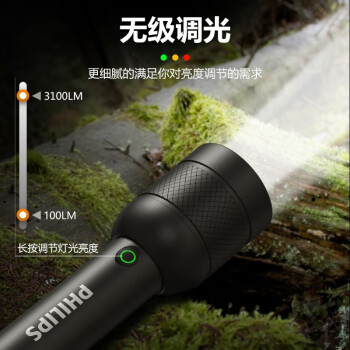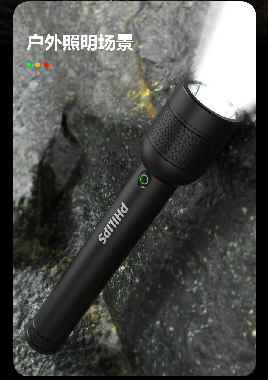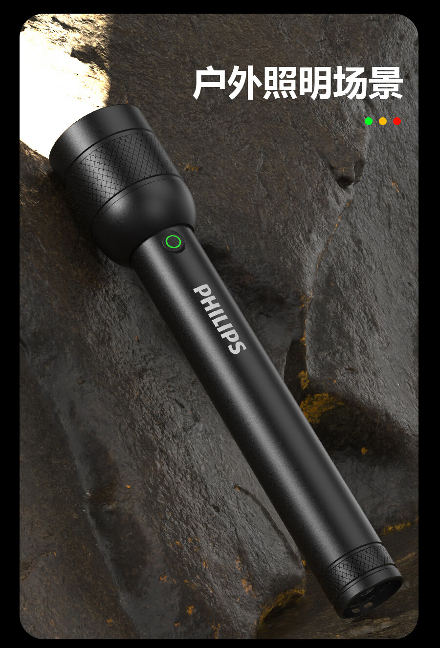 飞利浦/PHILIPS SFL8266 手电筒 户外强光超亮远射Type-c充电三核灯珠灯SFL8266黑色