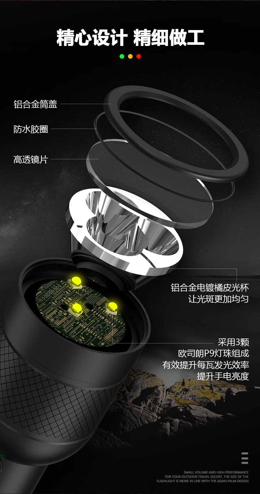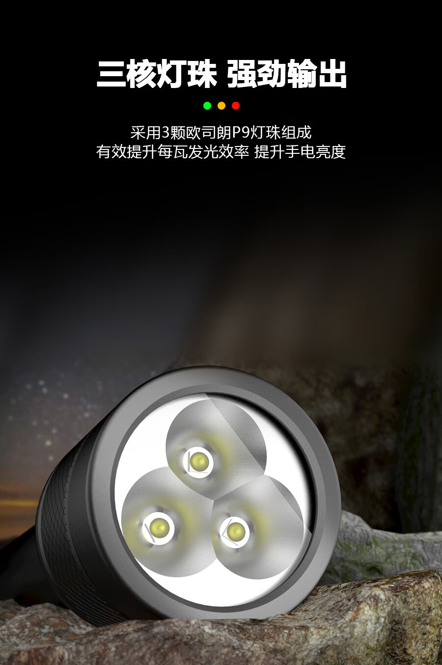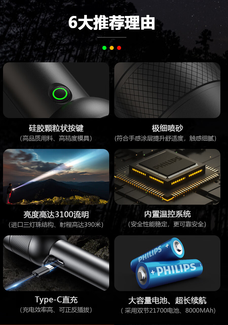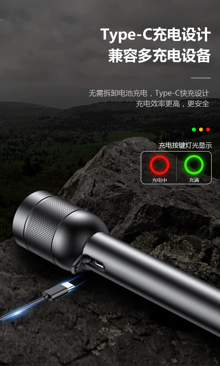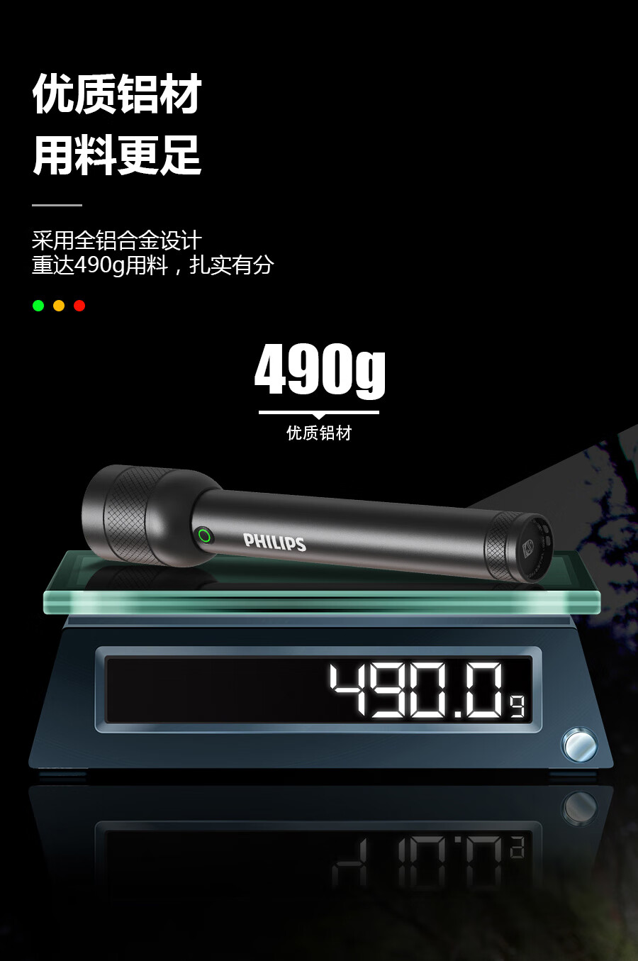 飞利浦/PHILIPS SFL8266 手电筒 户外强光超亮远射Type-c充电三核灯珠灯SFL8266黑色