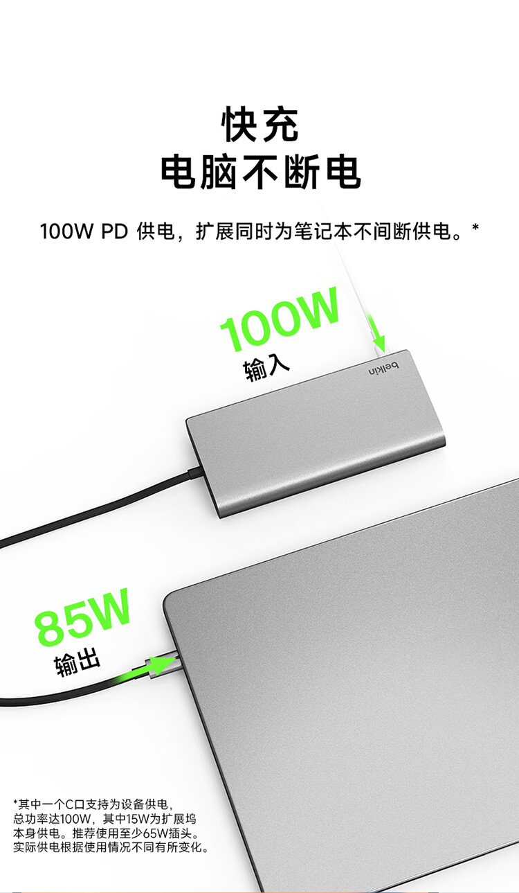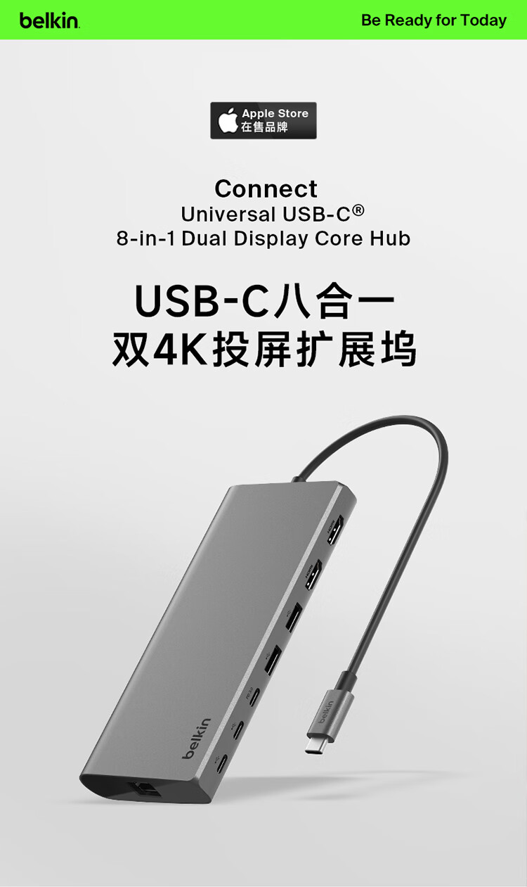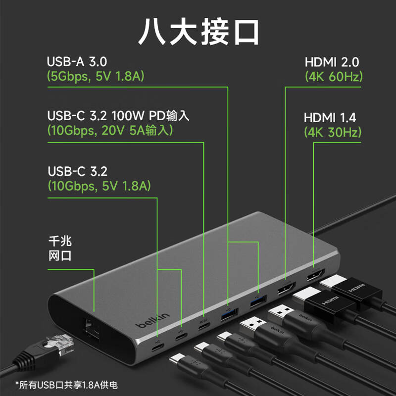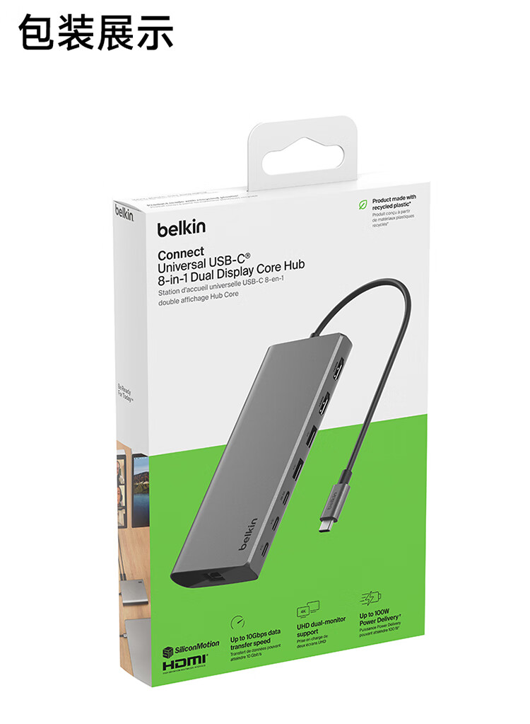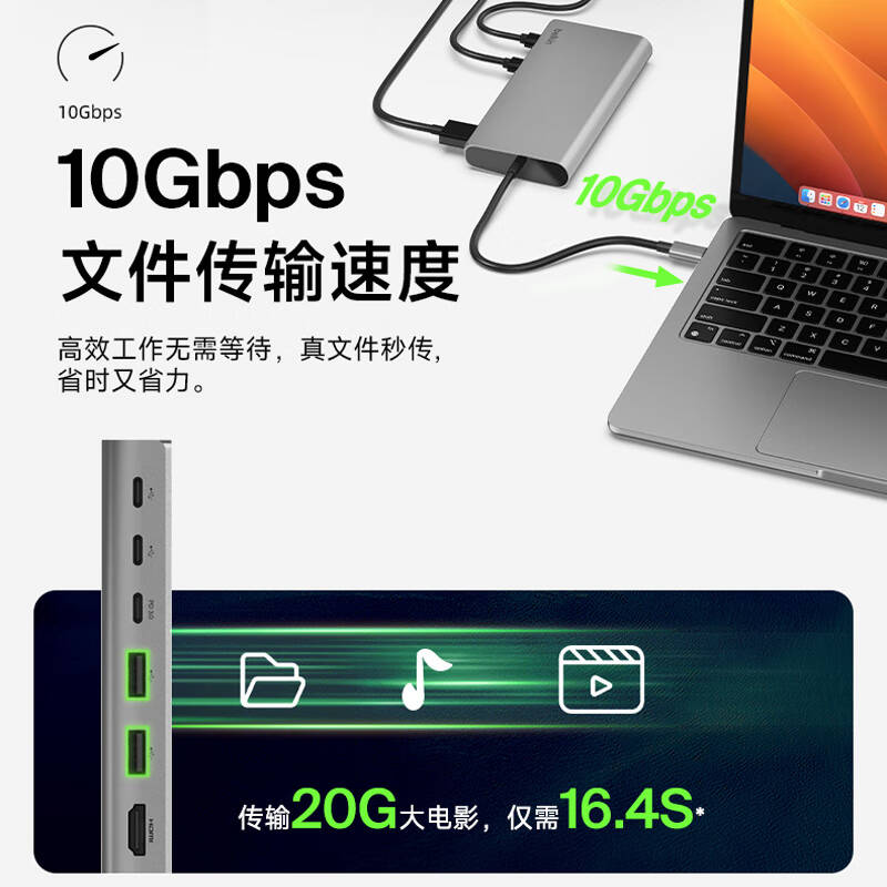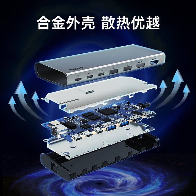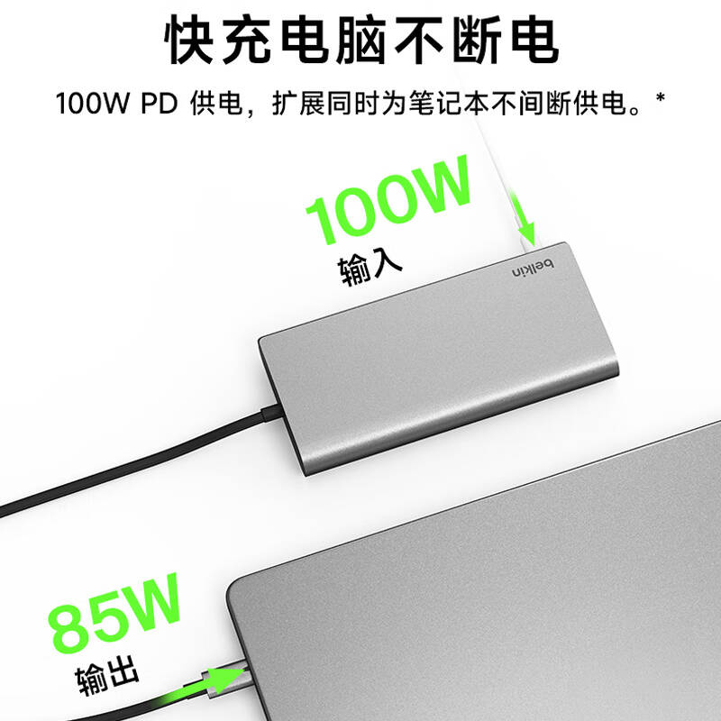 贝尔金/Belkin INC015btSGY-CZ 集线器 Type-C扩展坞 双HDMI超清4K拓展 10Gbps高效8合1 i