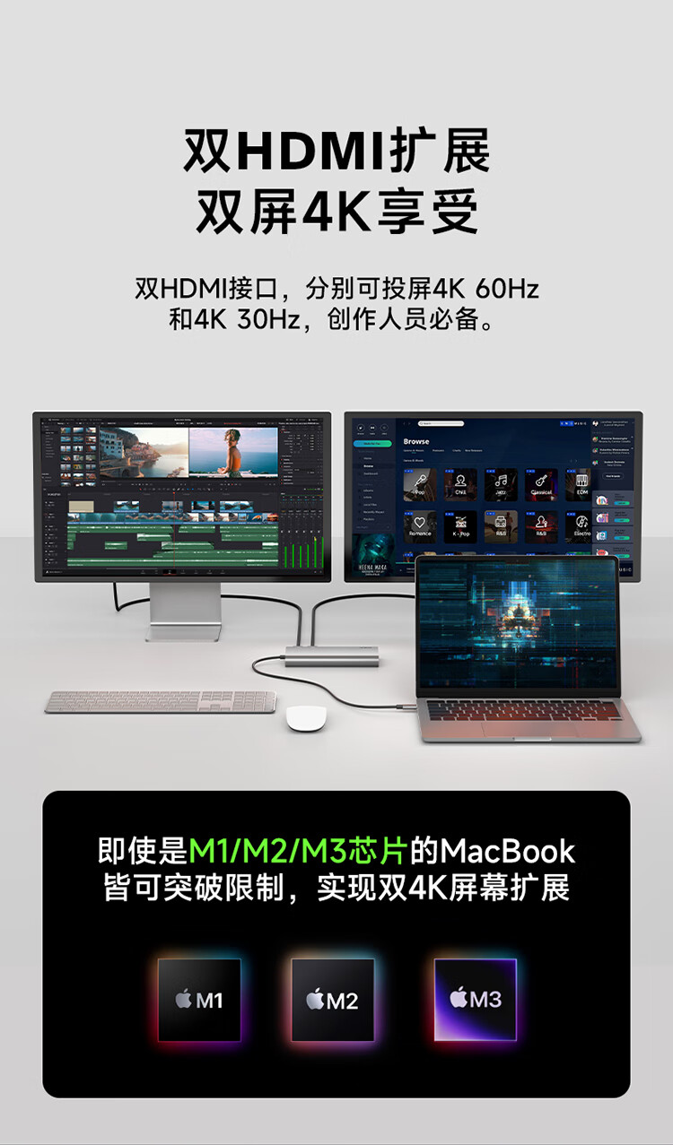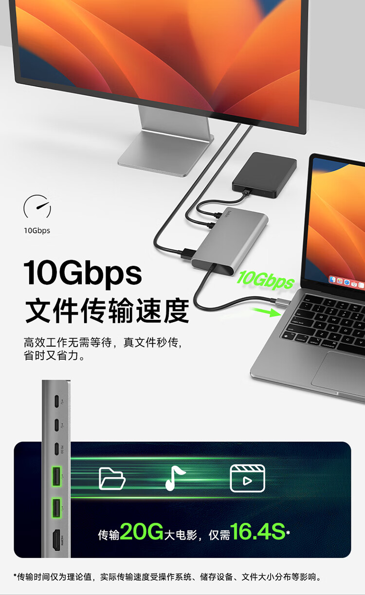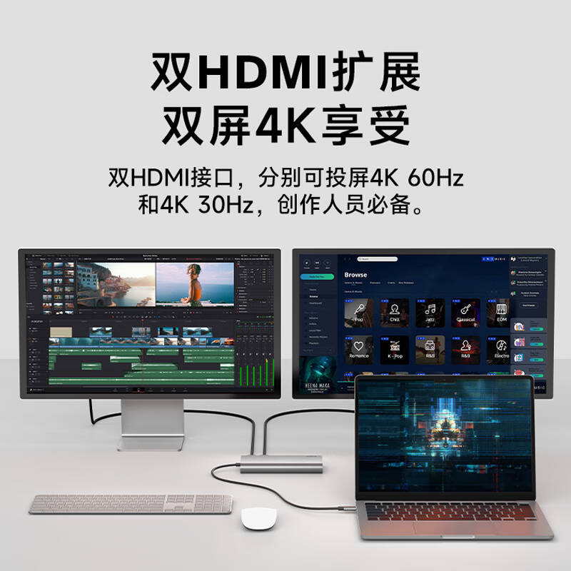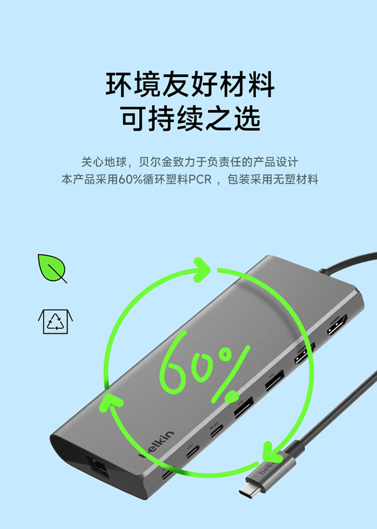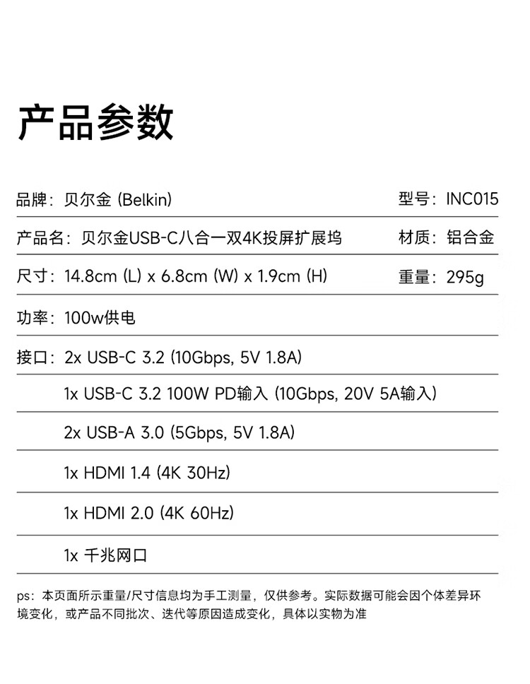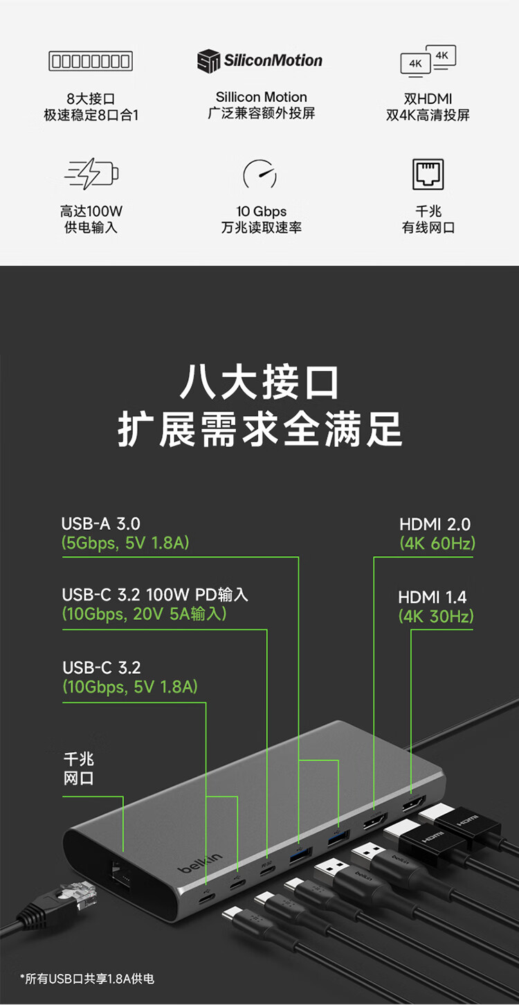 贝尔金/Belkin INC015btSGY-CZ 集线器 Type-C扩展坞 双HDMI超清4K拓展 10Gbps高效8合1 i