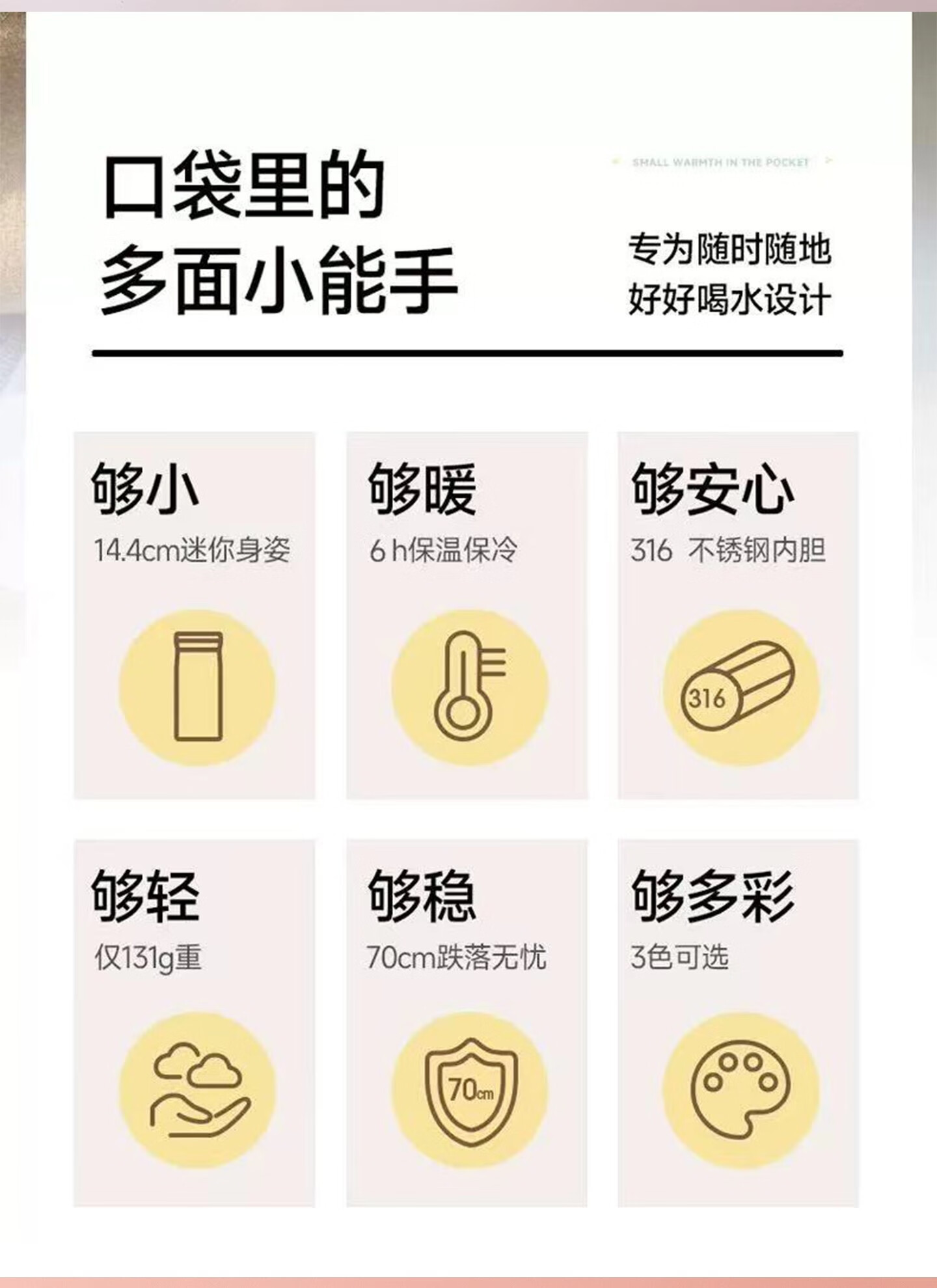 华象 5272-1 保温杯 迷你保温316L不锈钢水杯便携小巧口袋杯
