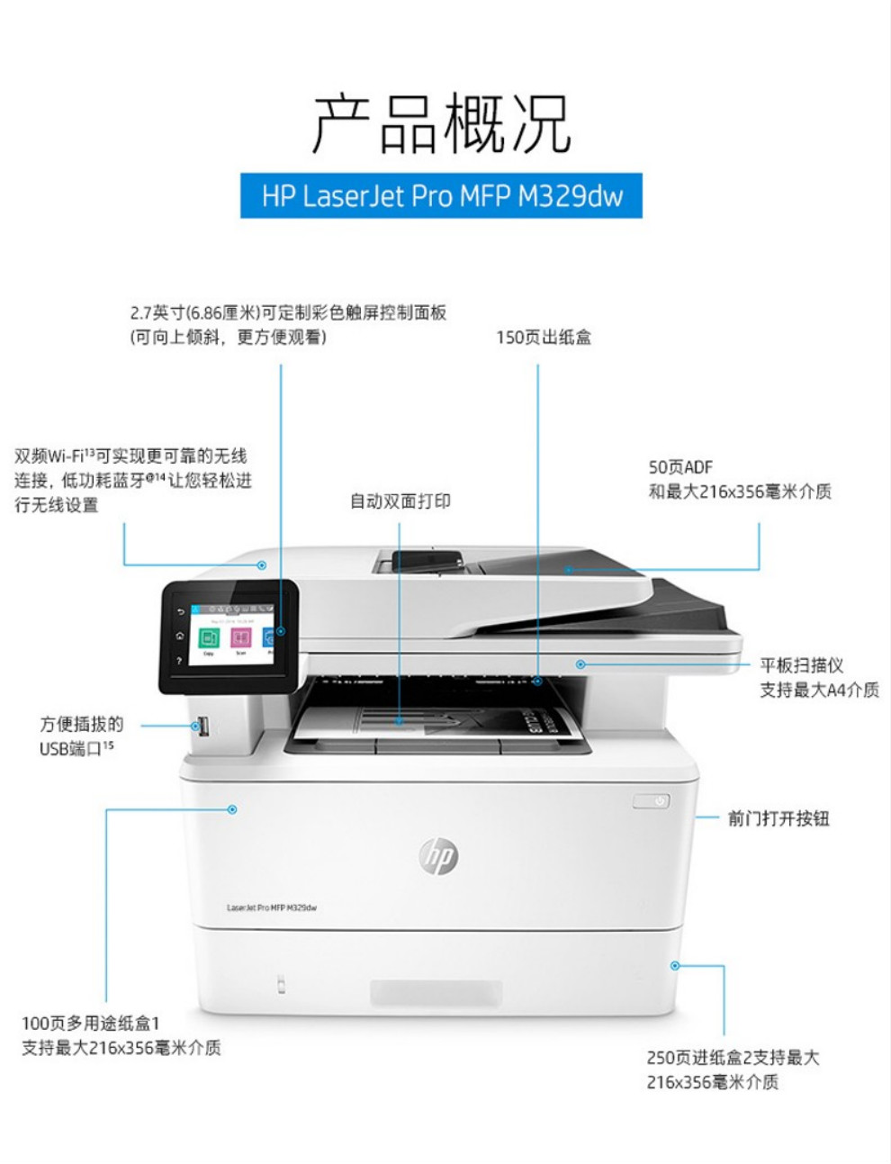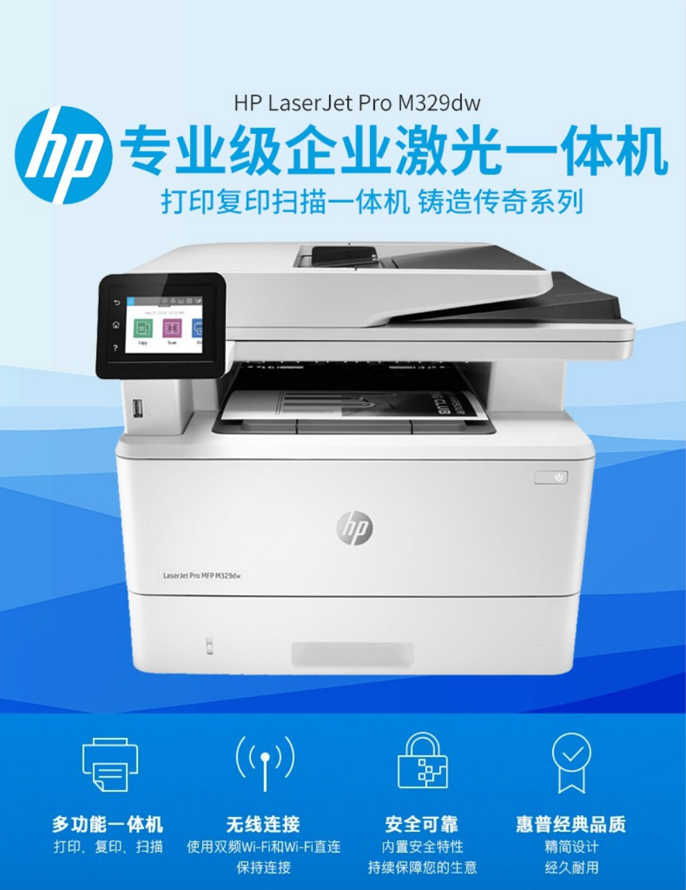 惠普(HP)黑白激光一体机M429dw/fdw 329dw打印机多功能自动双面复印扫描无线 M429fdw【四合一+自动双面打印+无线连接】 官方标配