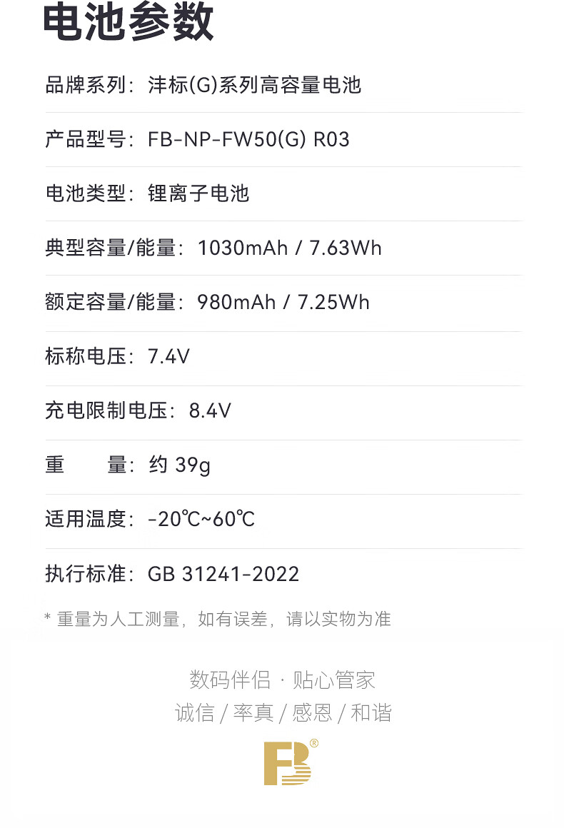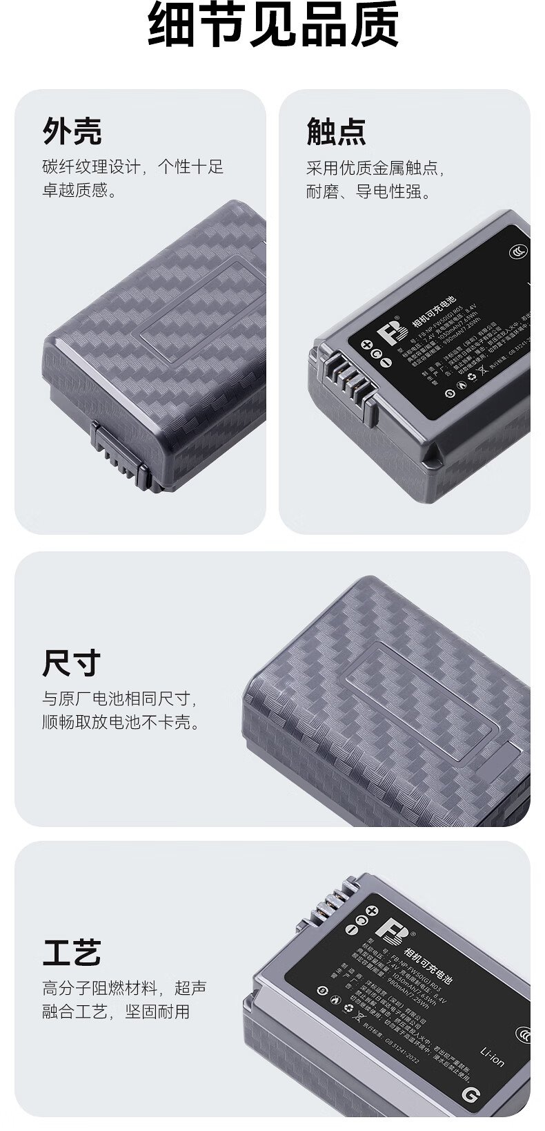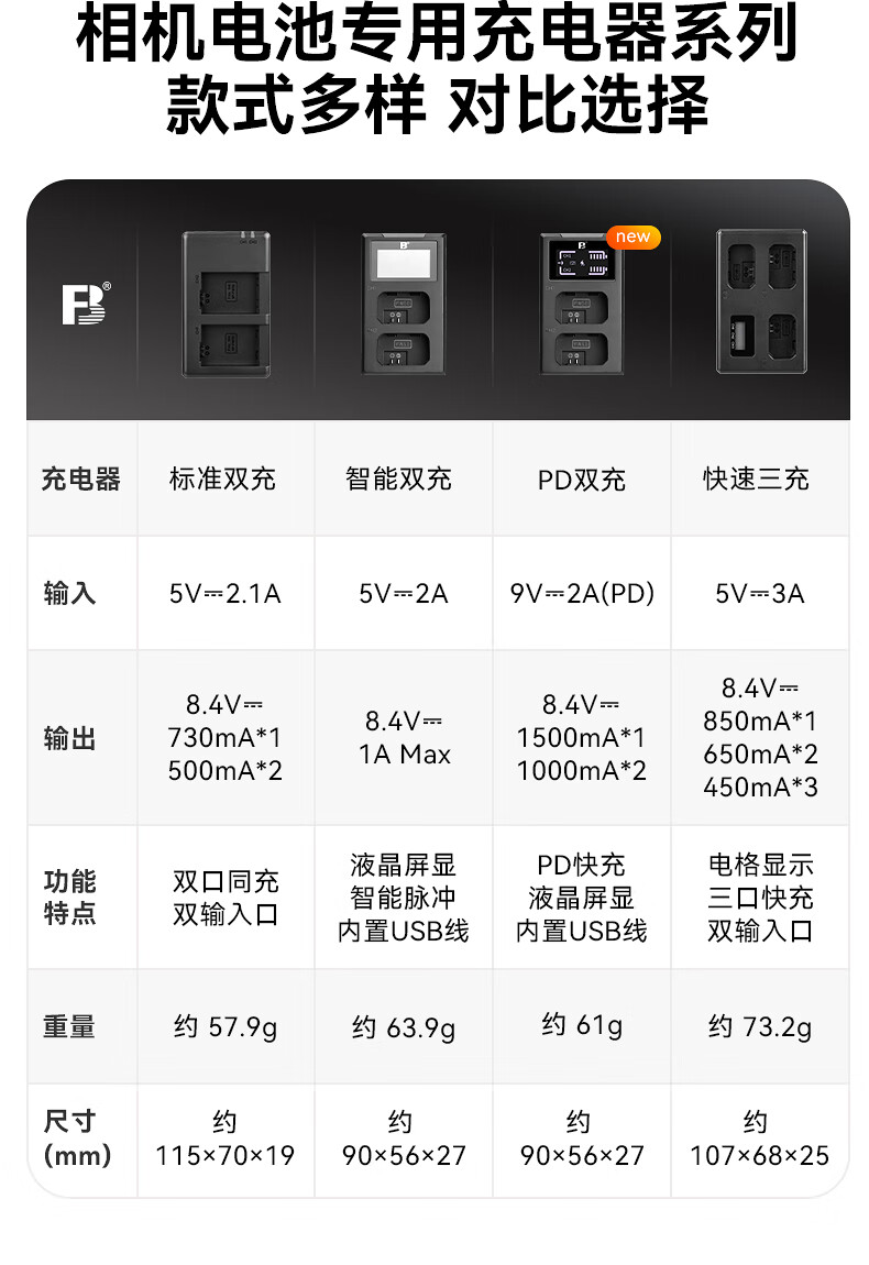 沣标/FB NP-FW50 相机电池/充电器 快速双槽充电器(PD快充)