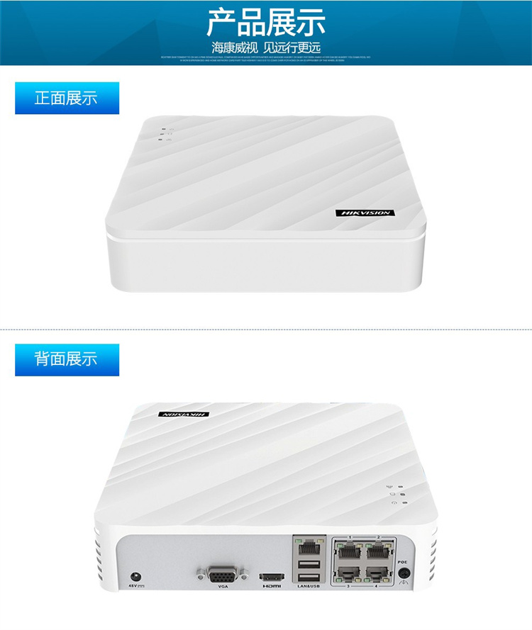 海康威视 DS-7104N-F1/4P 海康威视网络监控硬盘录像机4路POE网口 不带硬盘