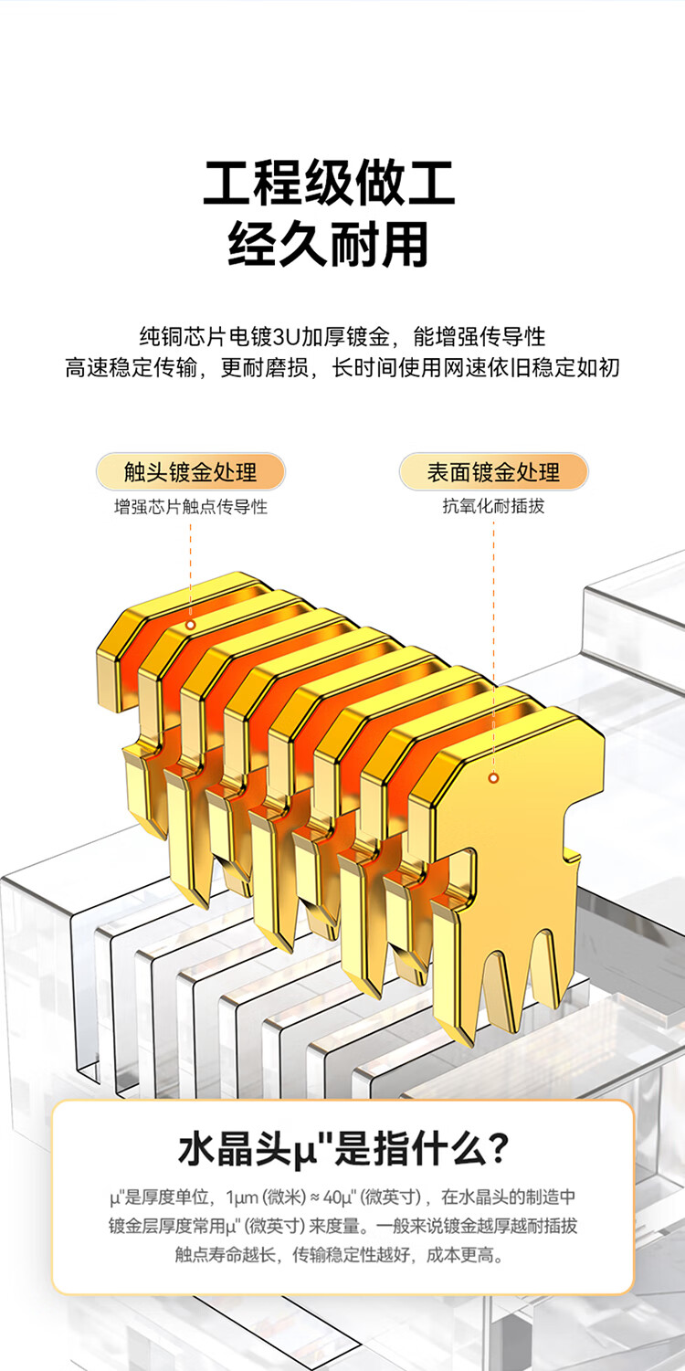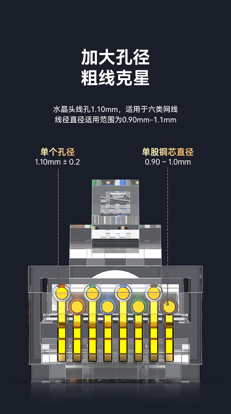 胜为/shengwei CRJ6A100U 网络连接设备 六类非屏蔽水晶头 6类两件式万兆网线接头 CAT6A镀金工程级RJ45电脑网络连接头100个