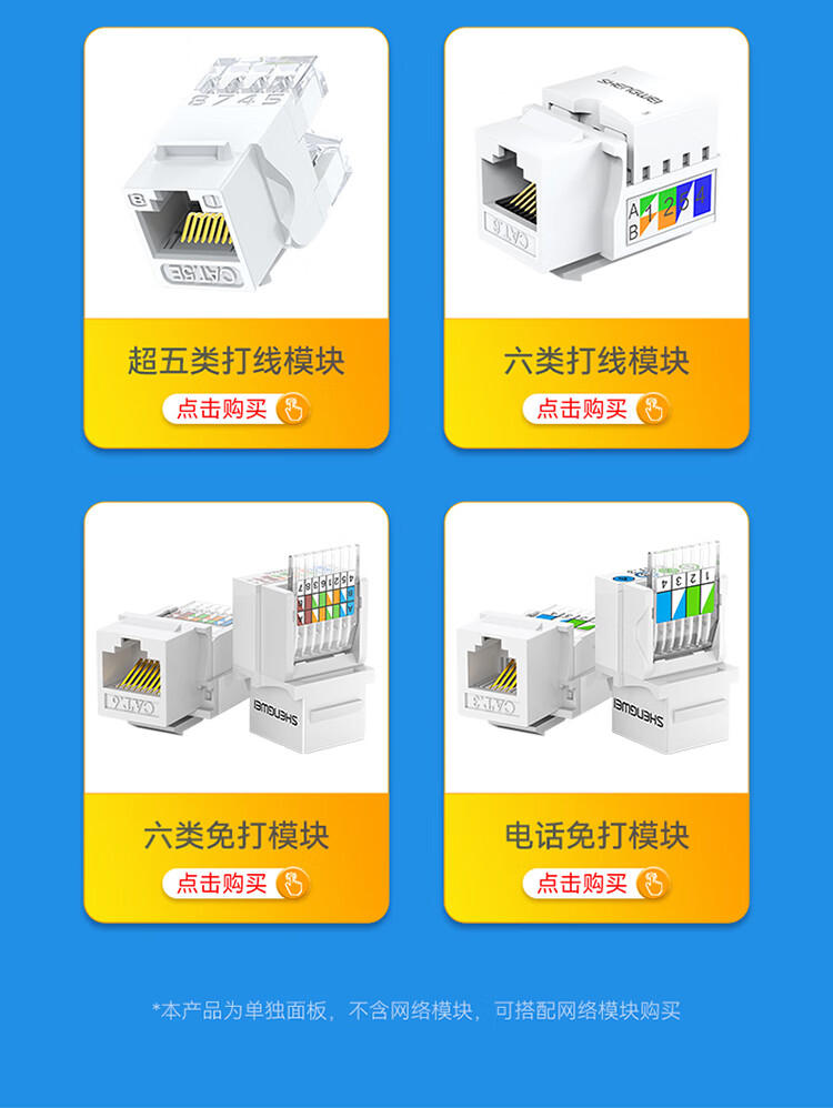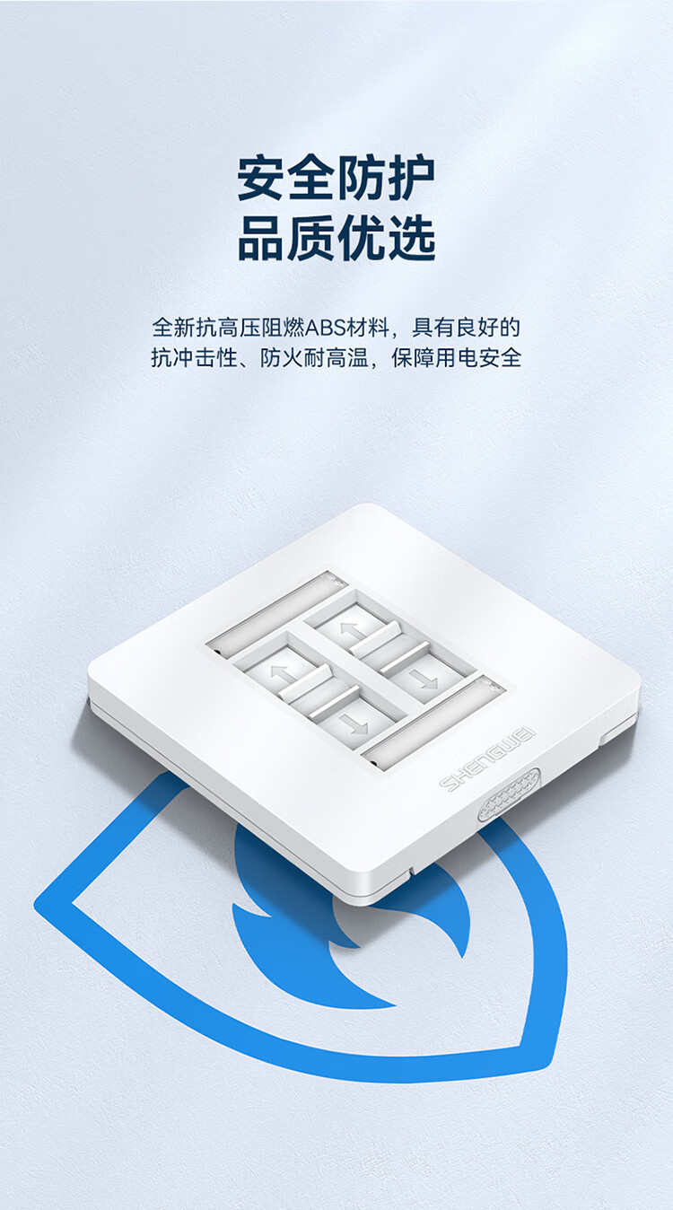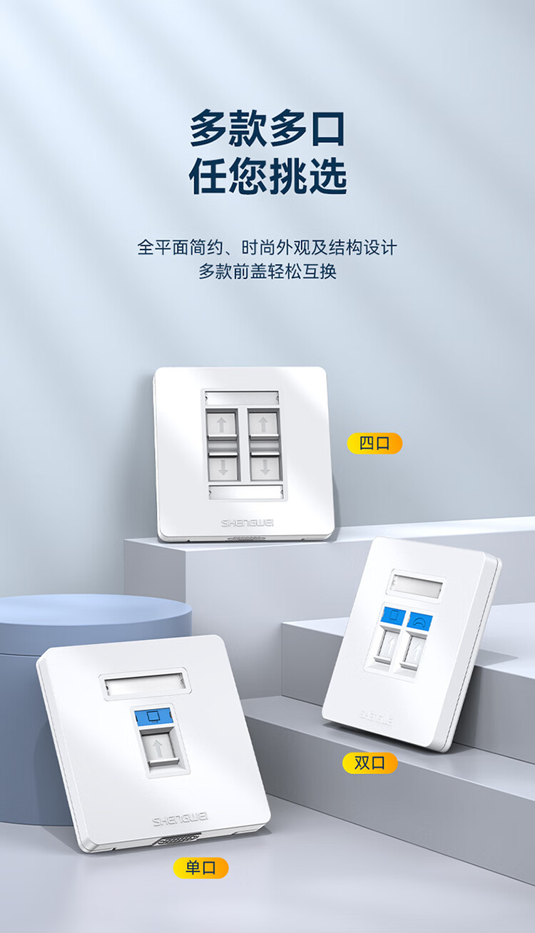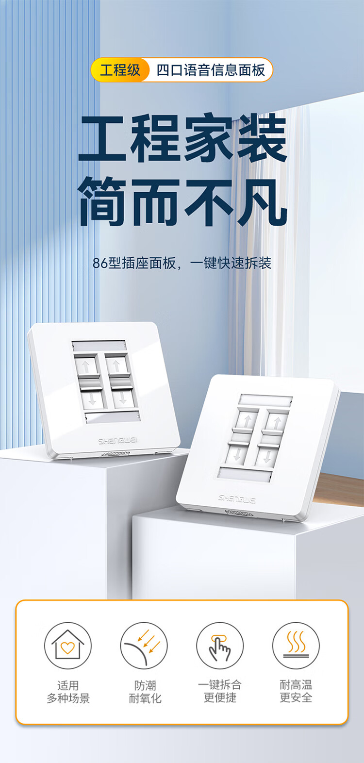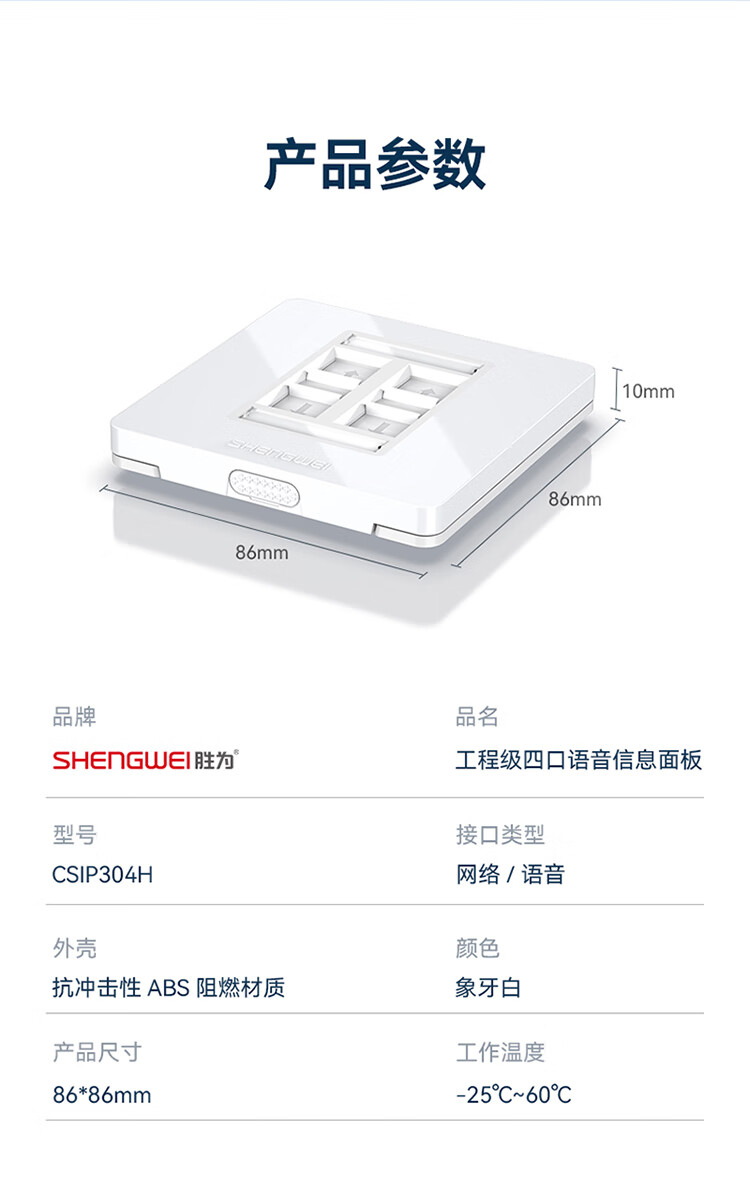 胜为/shengwei CSIP304H 面板 工程级四位网线插座通用86型网络面板电脑网络插座信息电话模块 CSIP304H