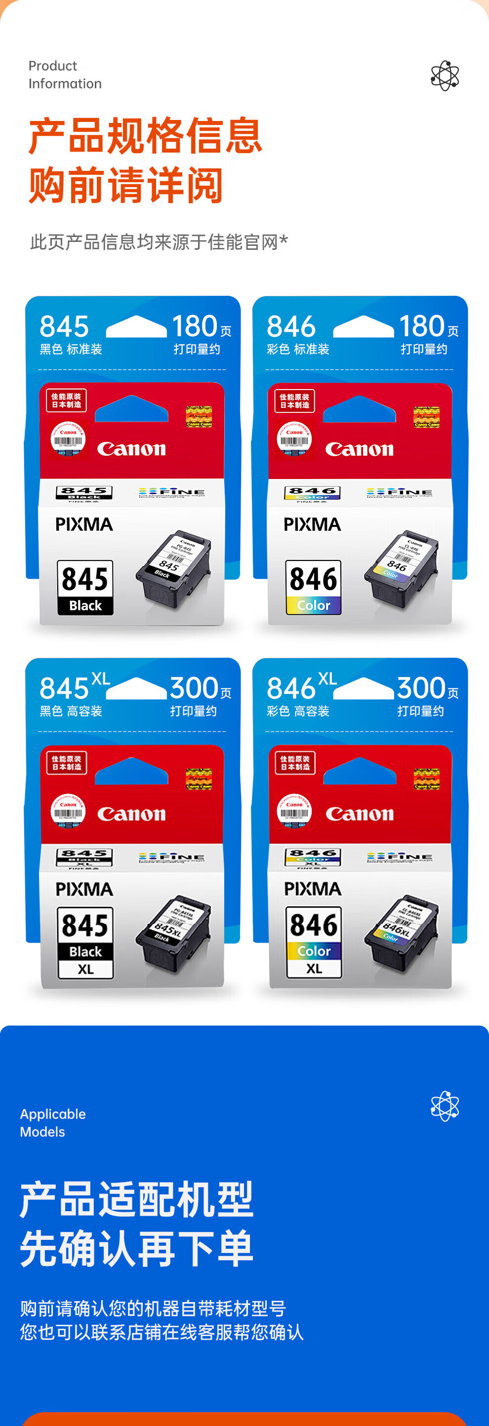 佳能/CANON 845/846 喷墨盒 845/846墨盒原装 单支装