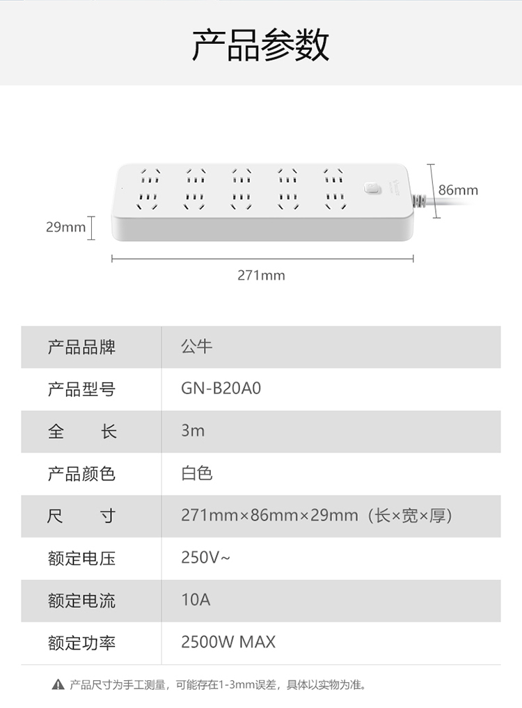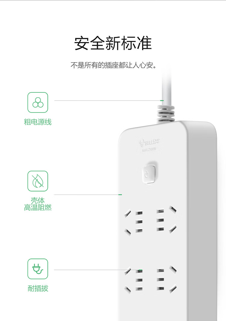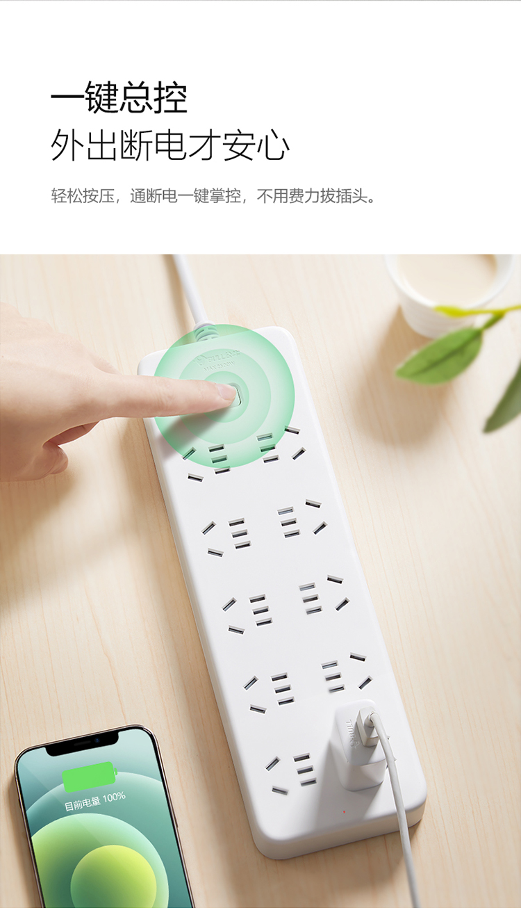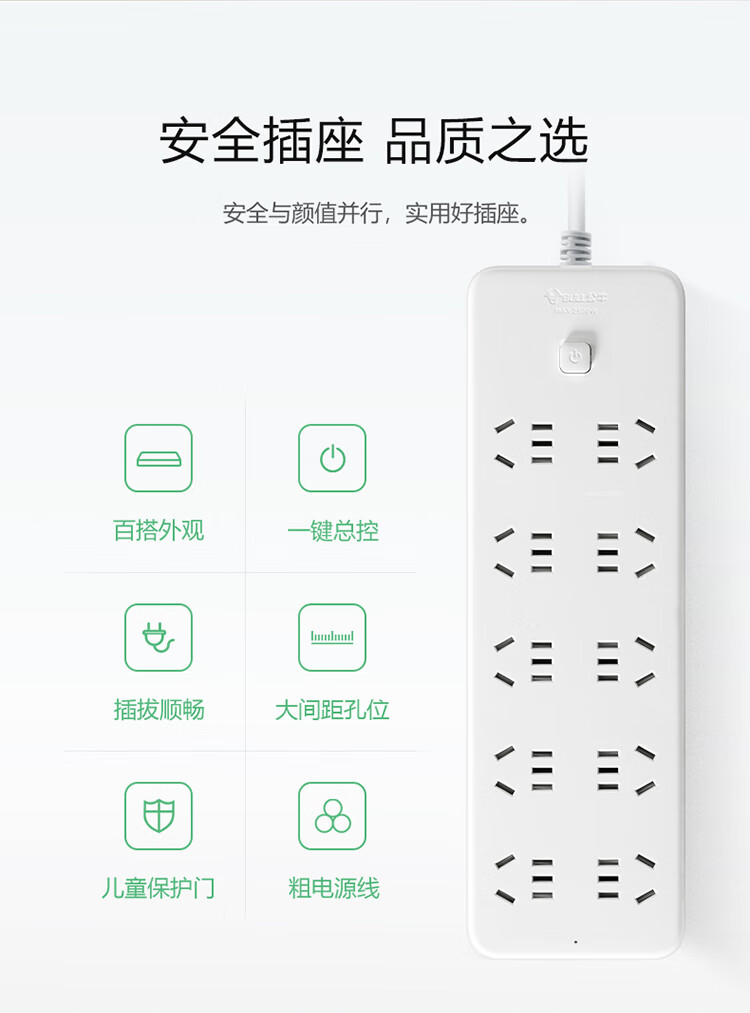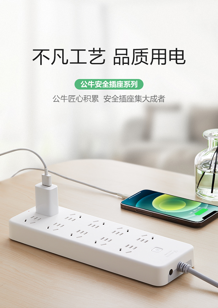 公牛/BULL GN-B20A10 插座 3C认证 10位总控开关全长20米