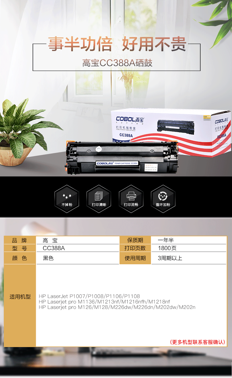 高宝/COBOL CC388A 硒鼓 适用惠普P1007/P1008/P1106/P1108;M1136/M1213nf/M1216nfh/M1218nf