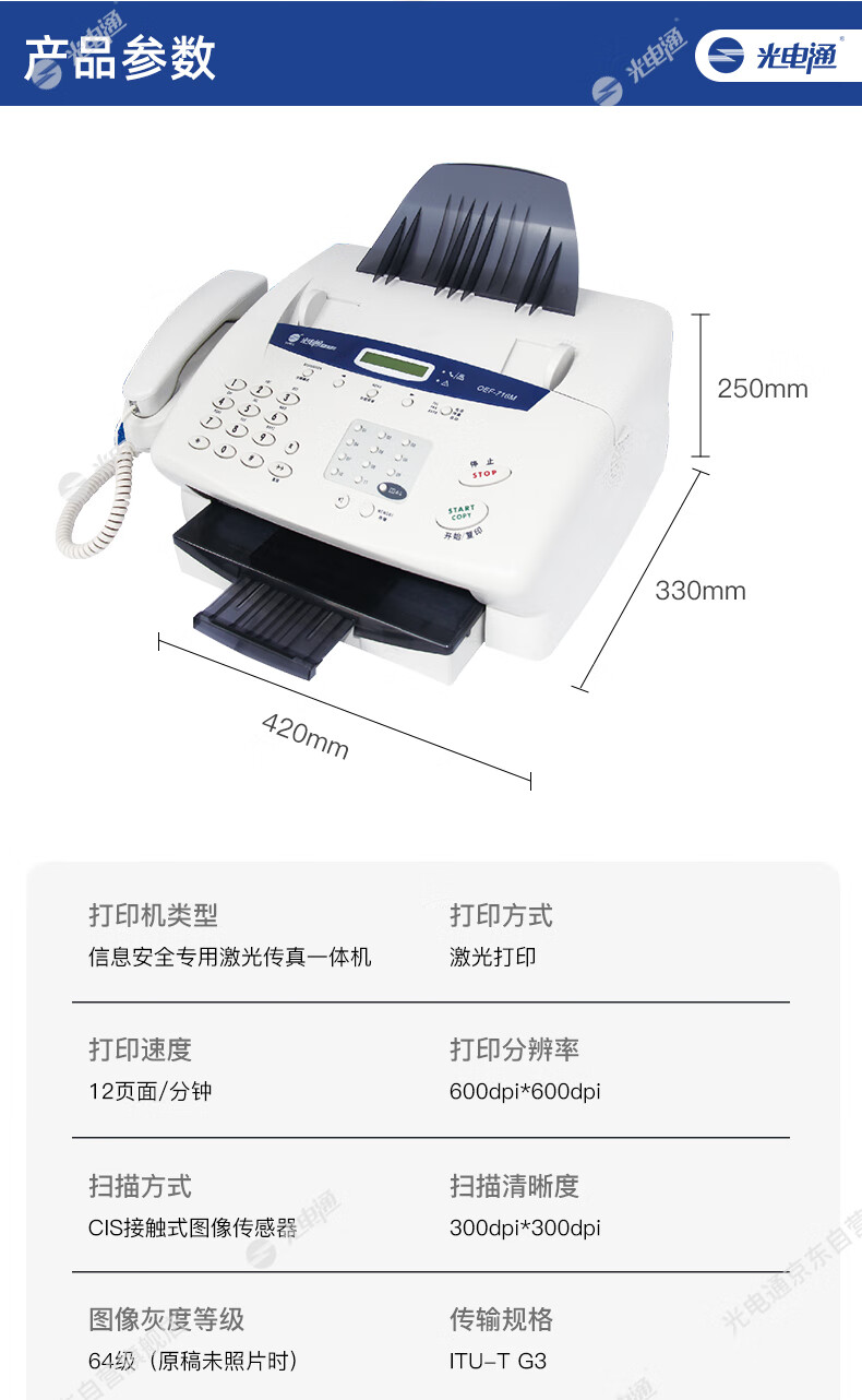 光电通/TOEC OEF-716M 传真机 (打印 复印 扫描 传真 来电显示 传真加密)