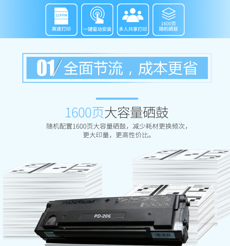 奔图/PANTUM P2506 A4 黑白打印机 A4黑白激光打印机 高速打印 便捷打印 自动休眠 节能省电 P2506 USB