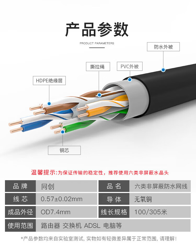 同创 TC6002 网络连接设备 国标纯铜线芯CAT6类【0.57mm】双屏蔽双绞线箱装线 【TC6002】六类千兆-双屏蔽、计价单位:米