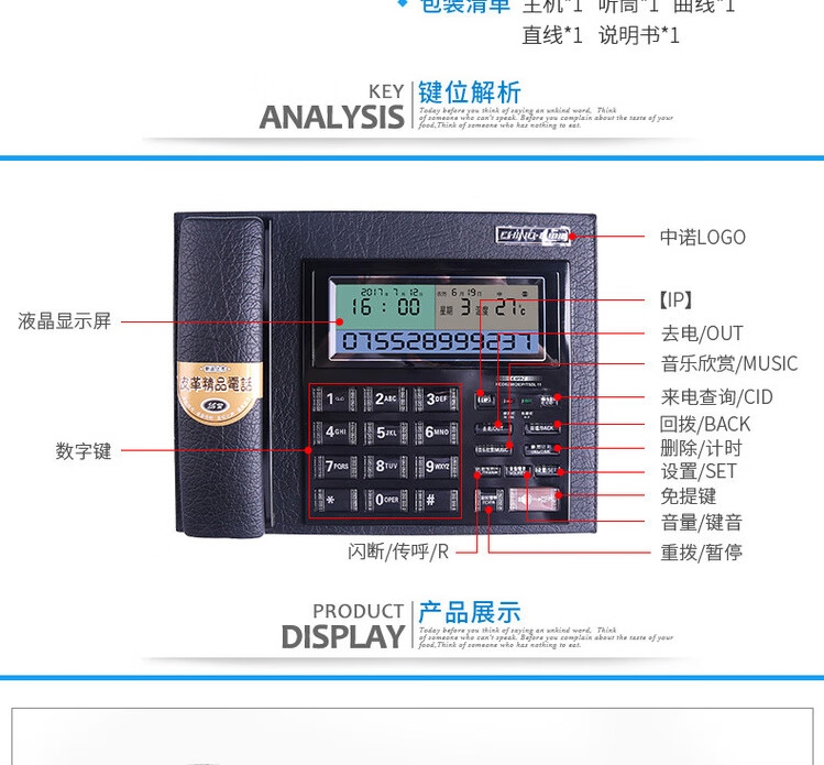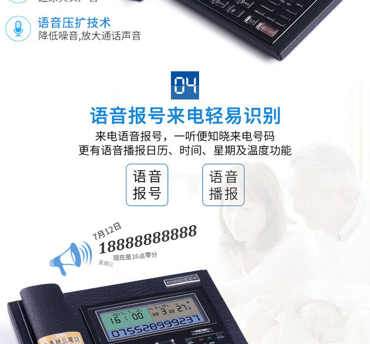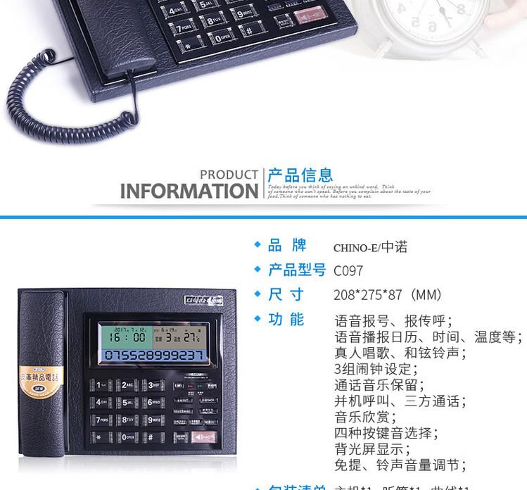 中诺/CHINO-E 中诺C097 普通电话机 座式家用商务办公室座机免提通话报号 黑色