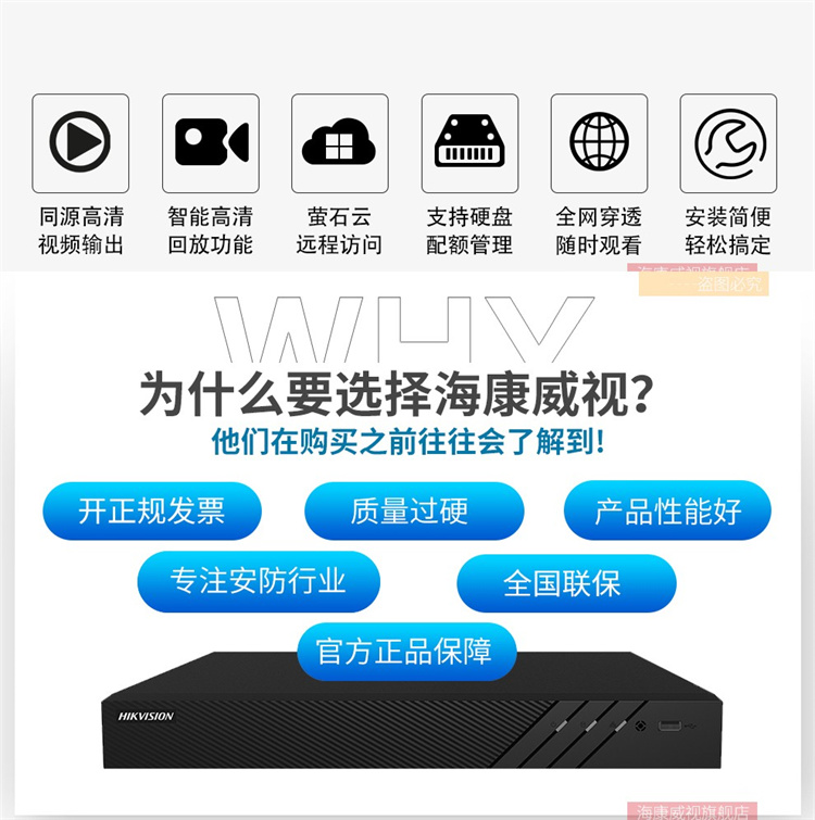 海康威视 DS-7808N-R2 海康威视DS-7800N系列网络监控硬盘录像机高清NVR监控主机 不带硬盘