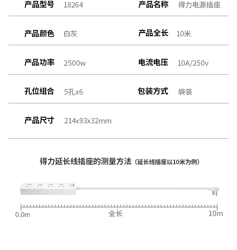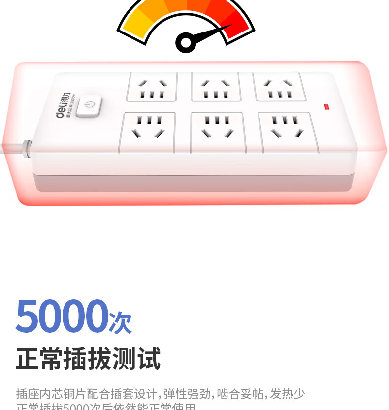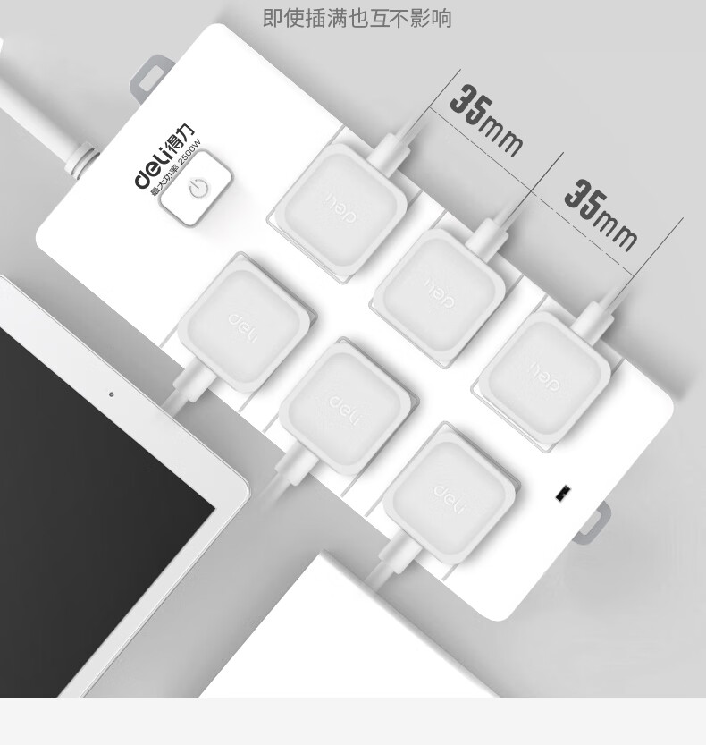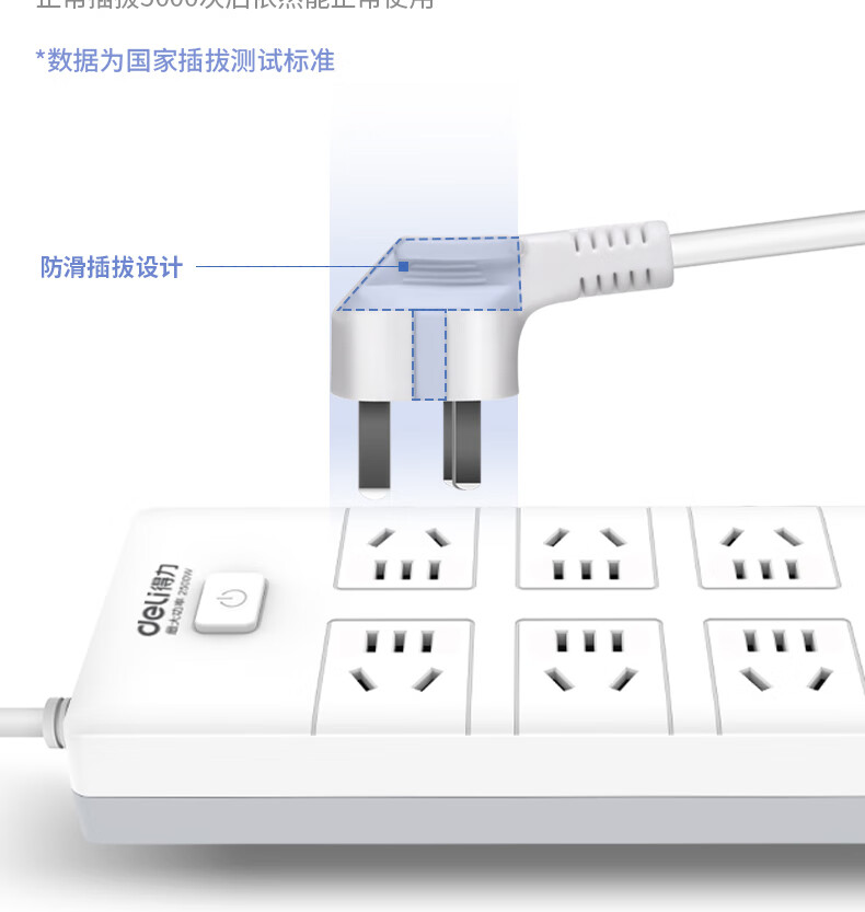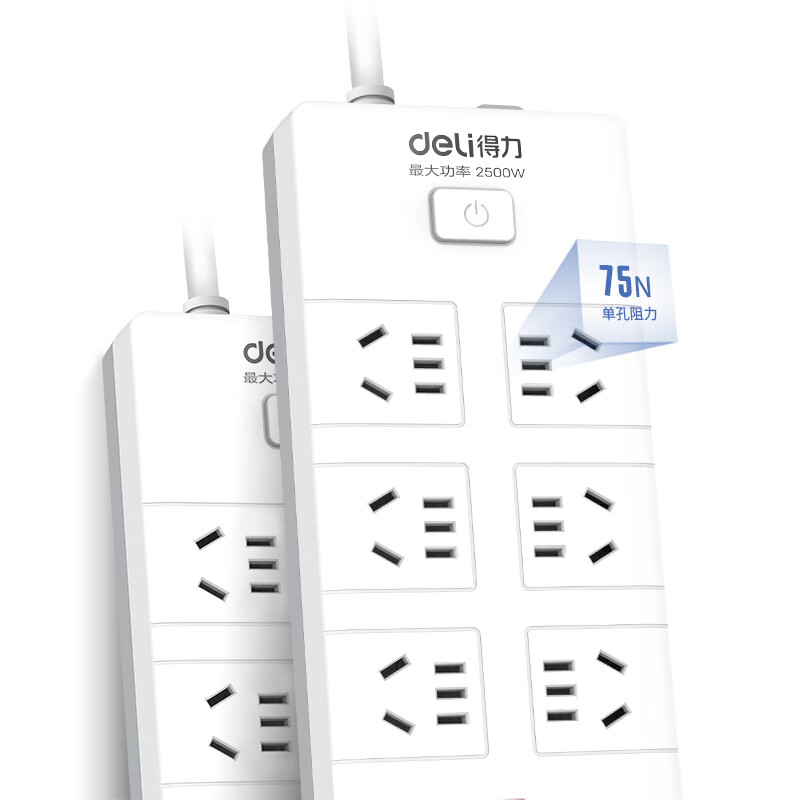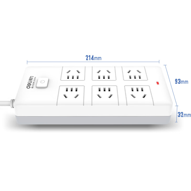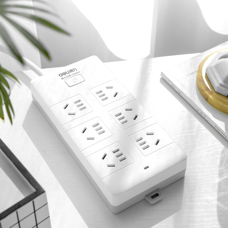 得力/deli 18264 插座 新国标 6位组合孔5米 总控开关