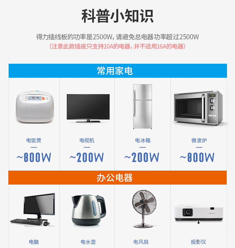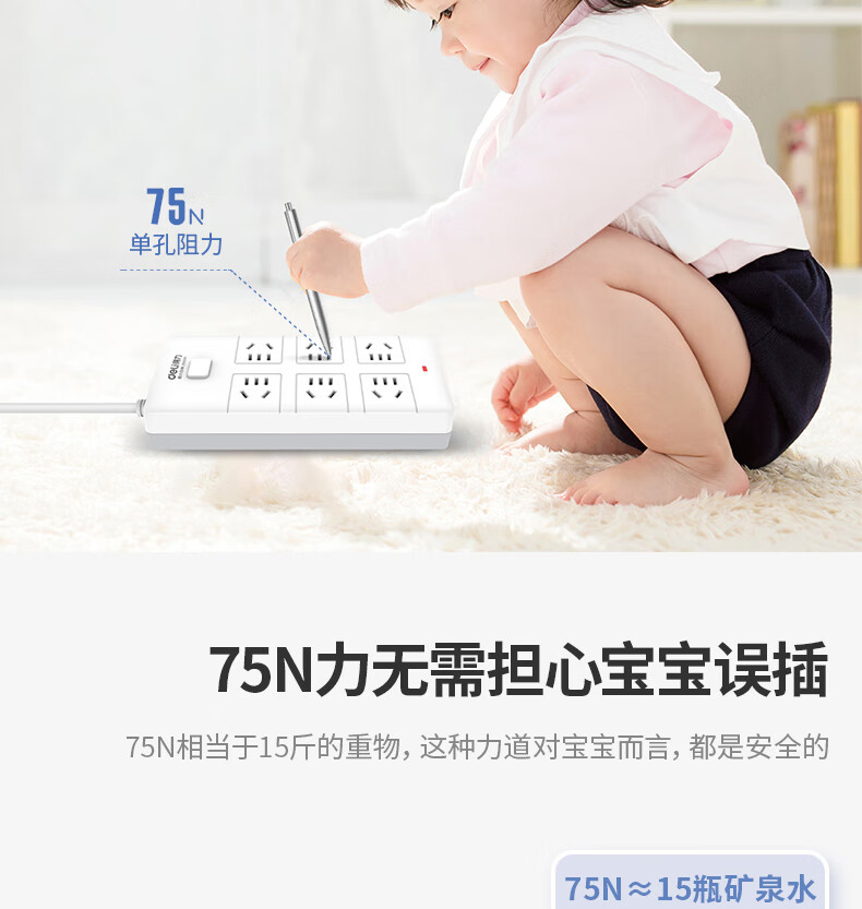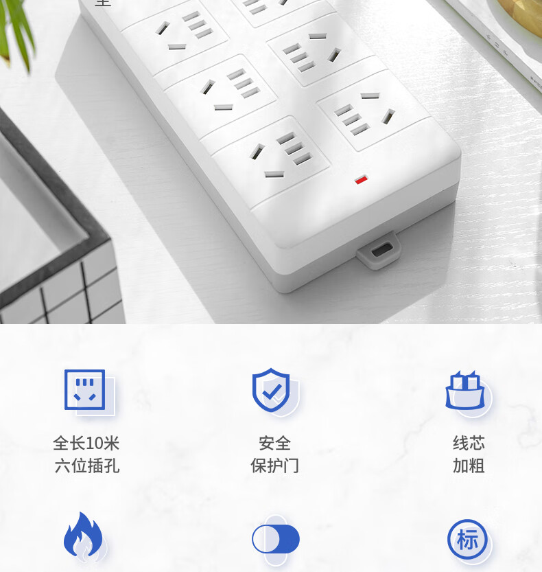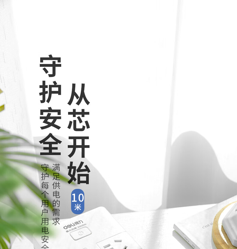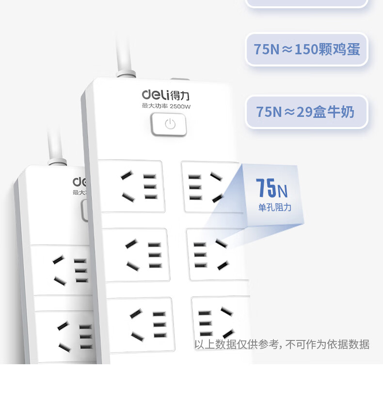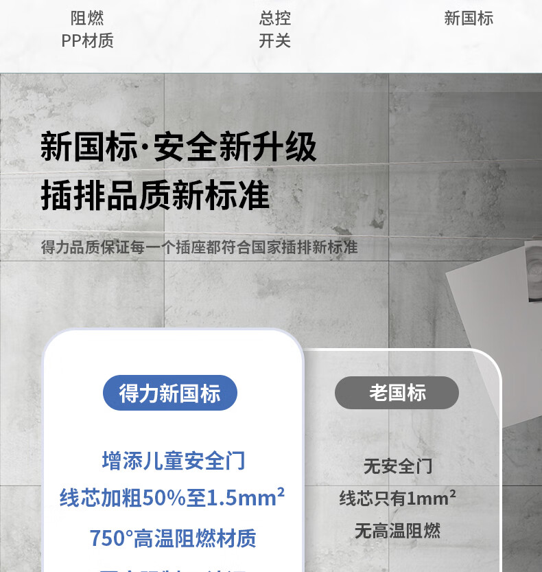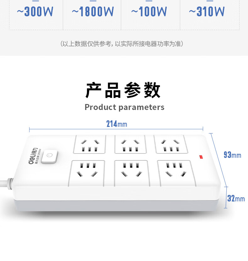 得力/deli 18264 插座 新国标 6位组合孔5米 总控开关