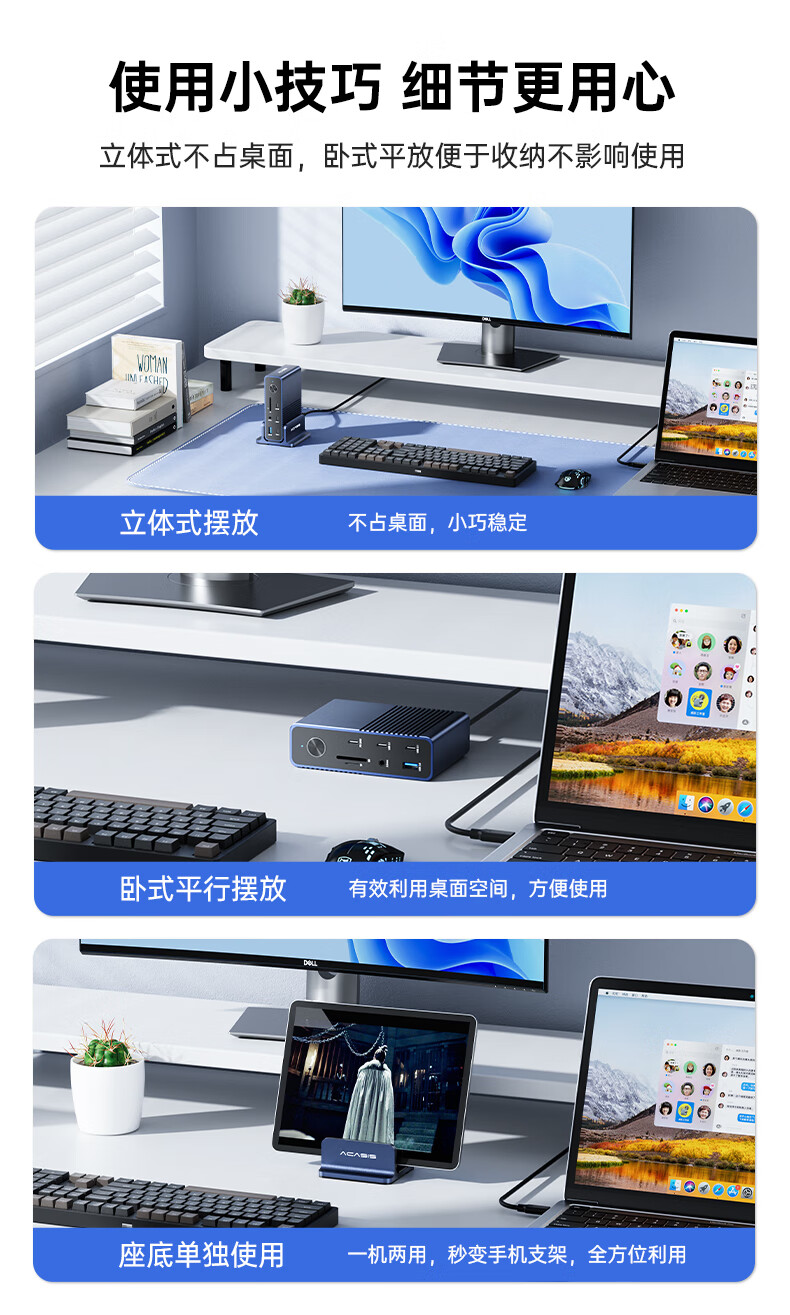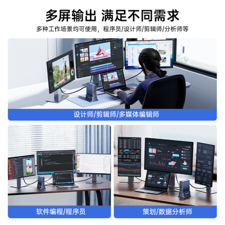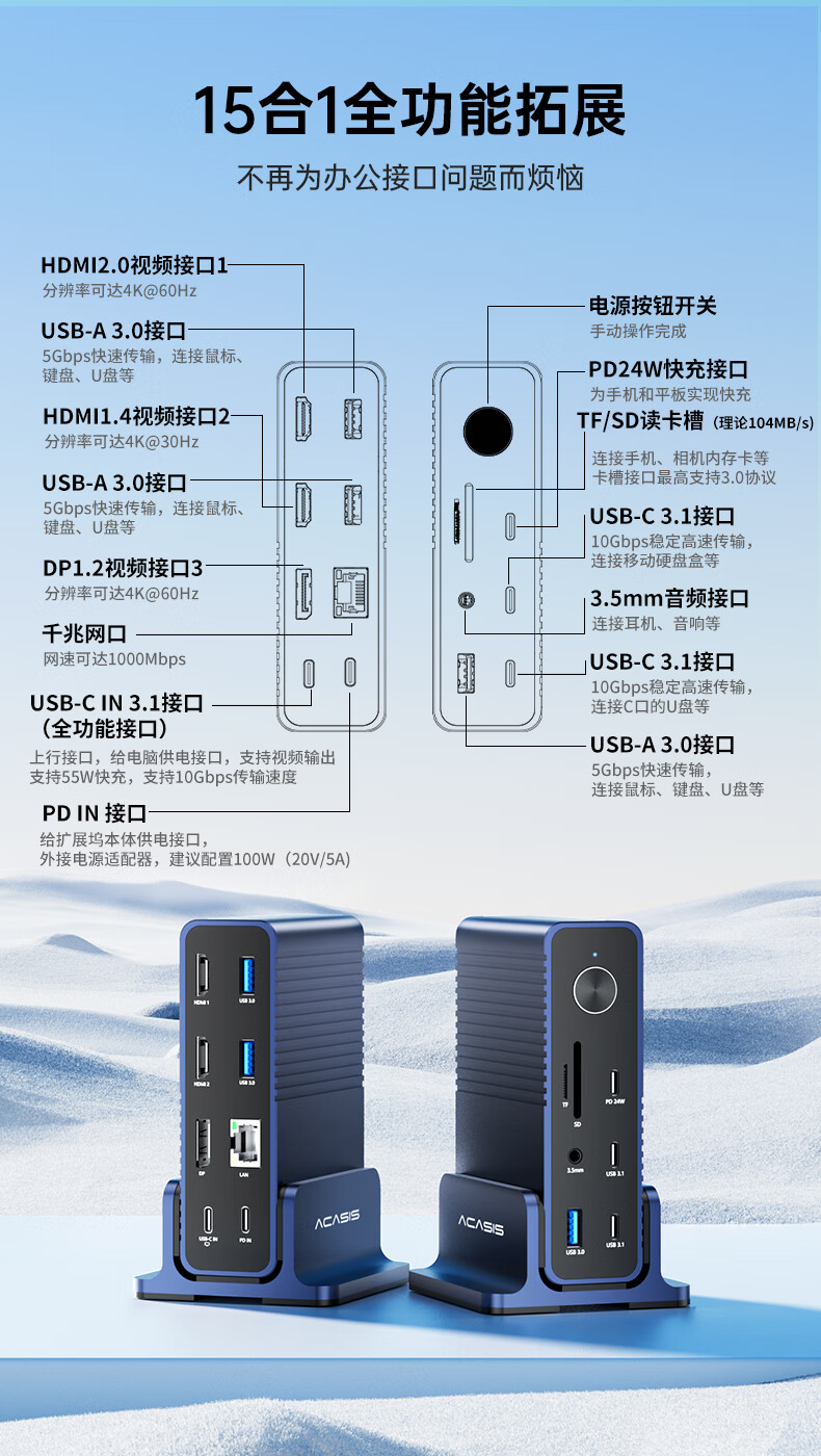 阿卡西斯/acasis DS-7A15 集线器 桌面拓展坞Type-C扩展坞dp转雷电4拓展坞4K60Hz四屏异显HDMI网线转换器