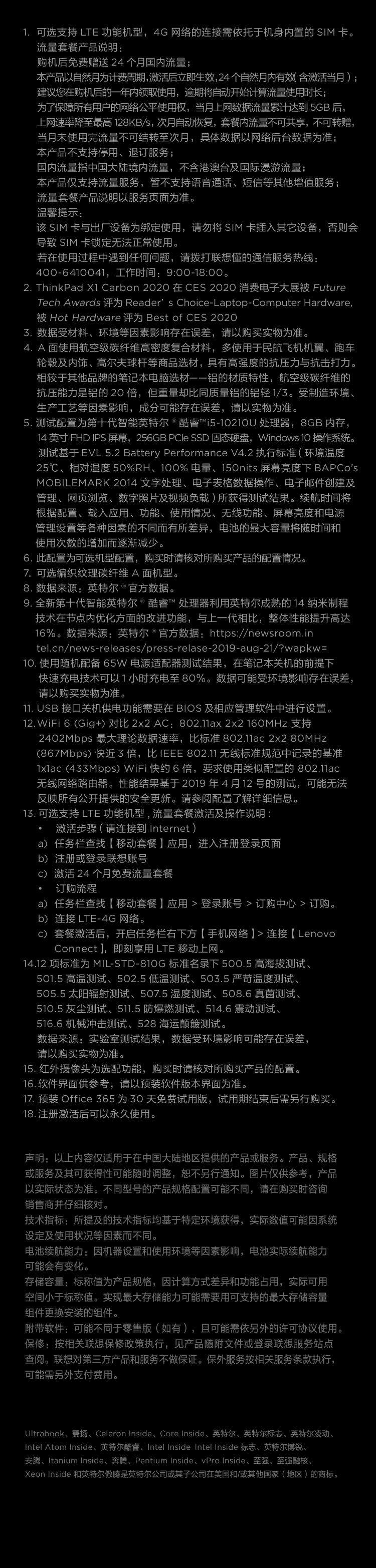联想ThinkPad X1 Carbon 2020 7FCD 英特尔酷睿i5 14英寸轻薄笔记本电脑 十代i5 16G 512G 4G版 沉浸黑