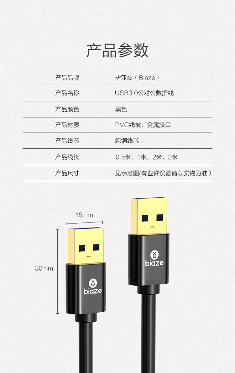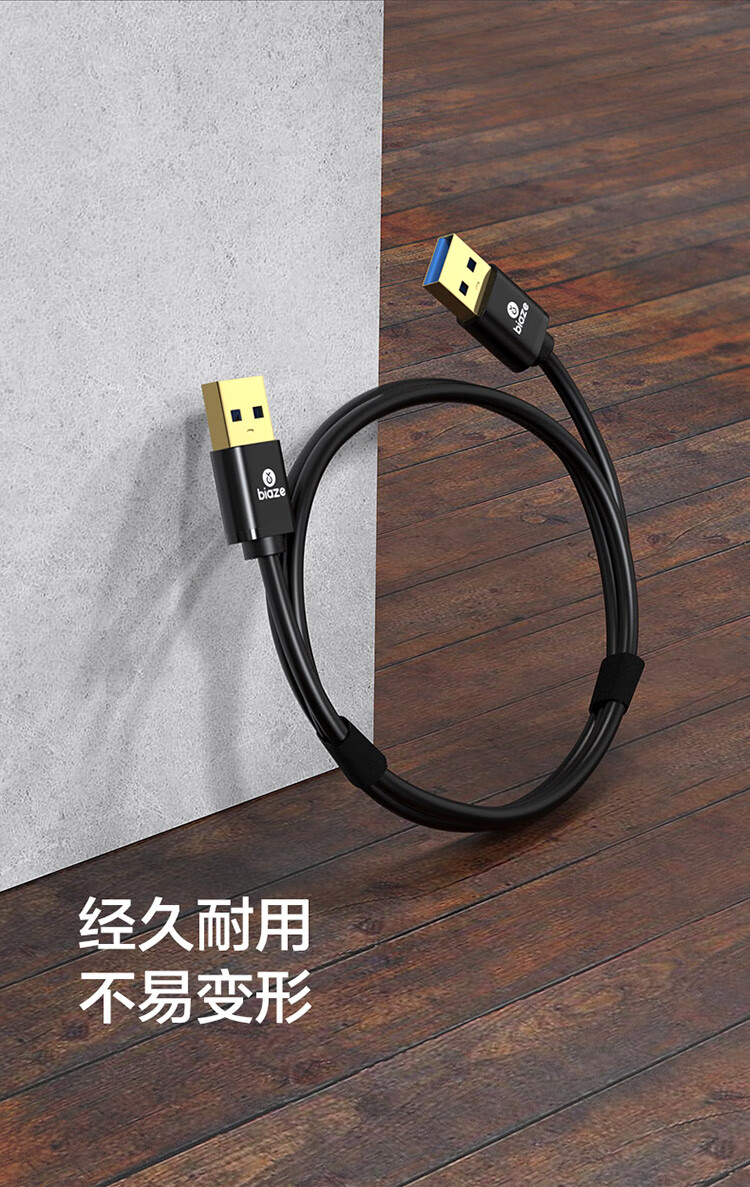 毕亚兹 USB3.0 数据线 传输线公对公 0.5米 双头移动硬盘盒数据高速传输线 笔记本散热器车载MP3连接线
