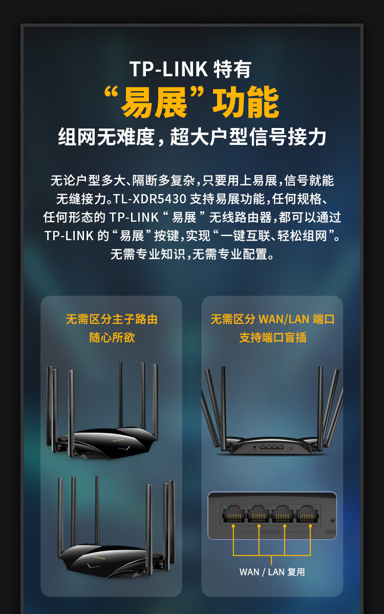 TP-LINK AX5400路由器 WiFi6 5G双频高速网络 Mesh路由 游戏路由 智能家用穿墙 XDR5430易展版