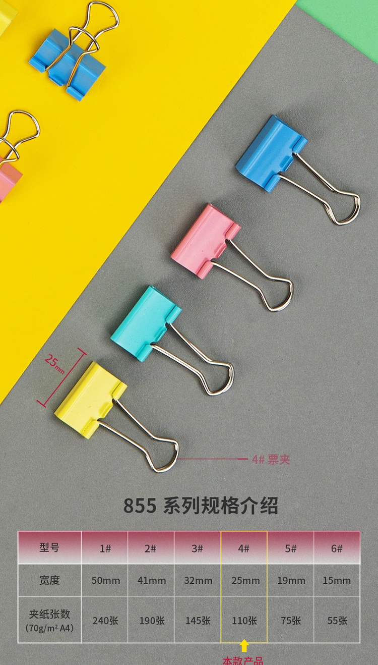 得力/deli 8554 长尾夹 中号金属燕尾夹票据文件夹办公