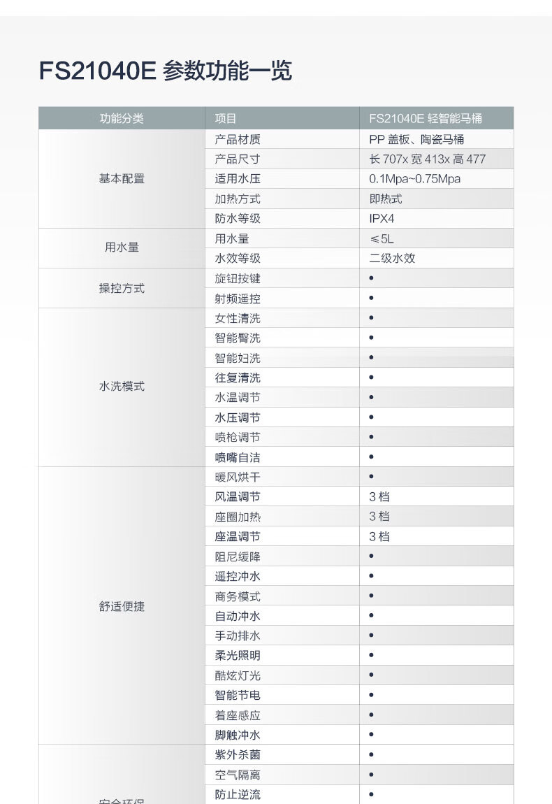 法恩莎/FAENZA FS21040E 便器 智能马桶全自动家用小户型一体式坐便器感应冲水洗屁股 (无水压限制)脚感冲水