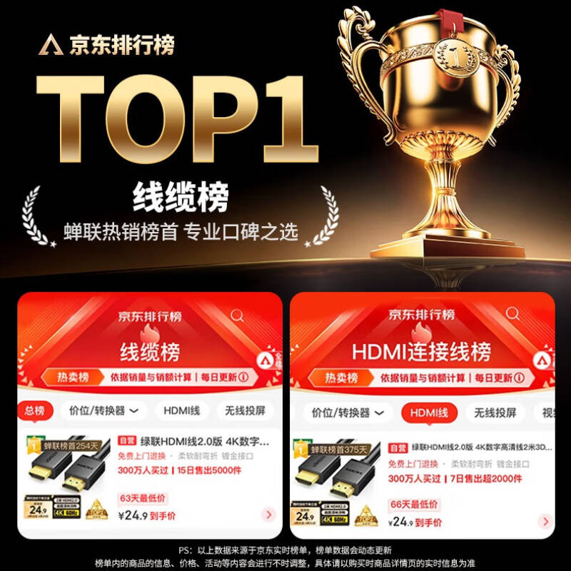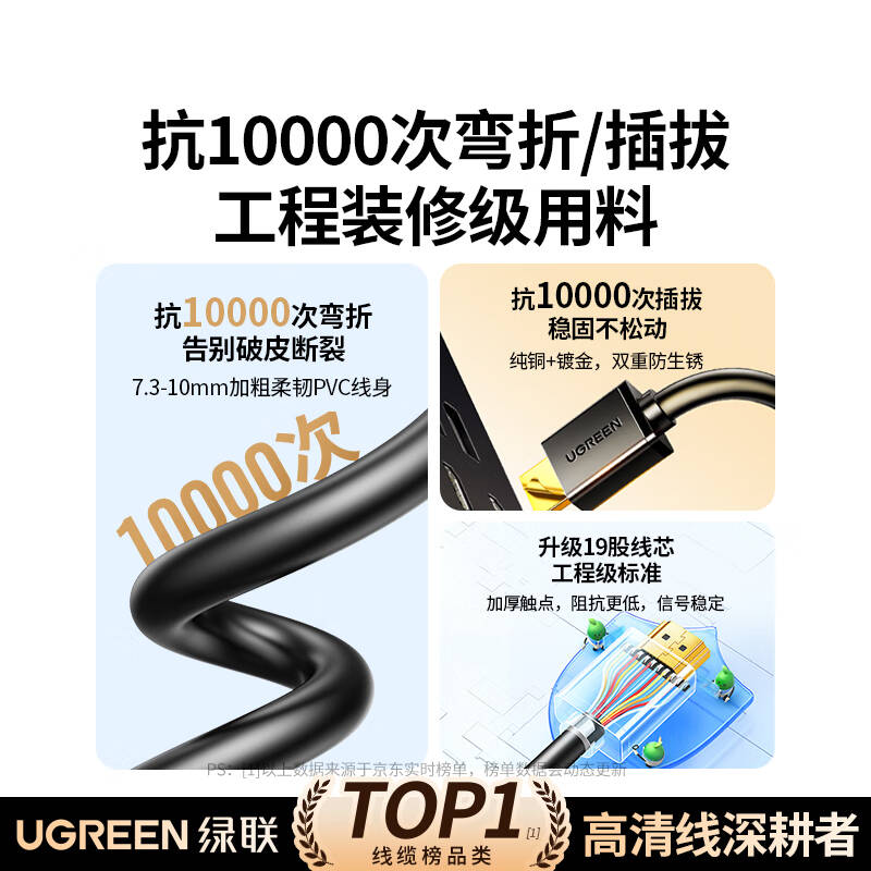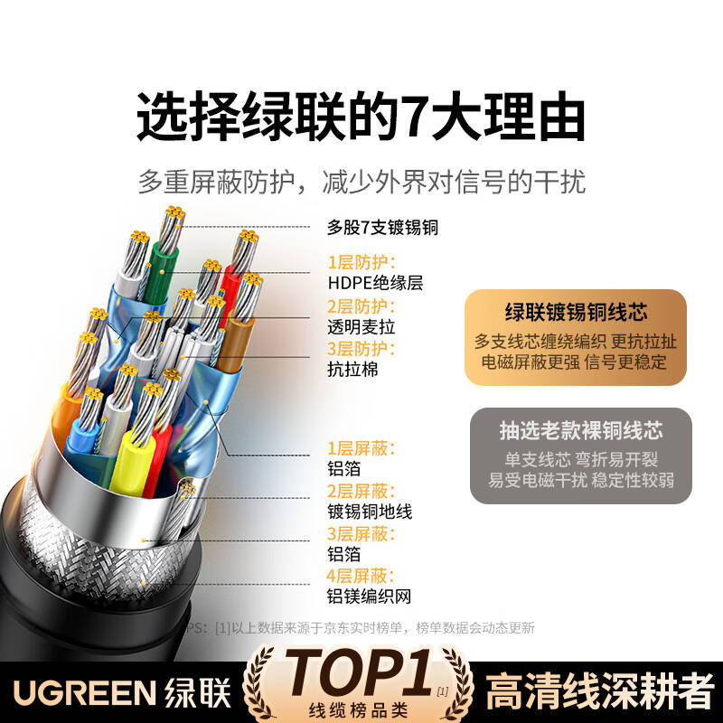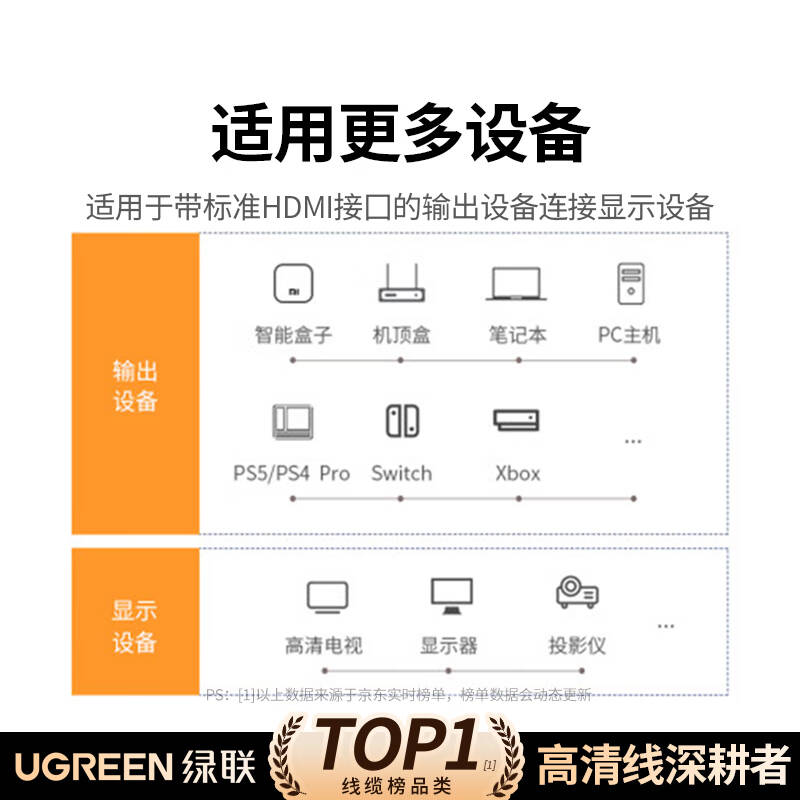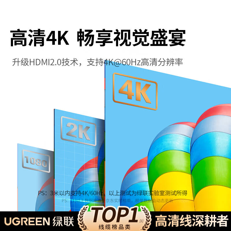 绿联/UGREEN HDMI 数据线 2.0版4K数字高清线2米视频线