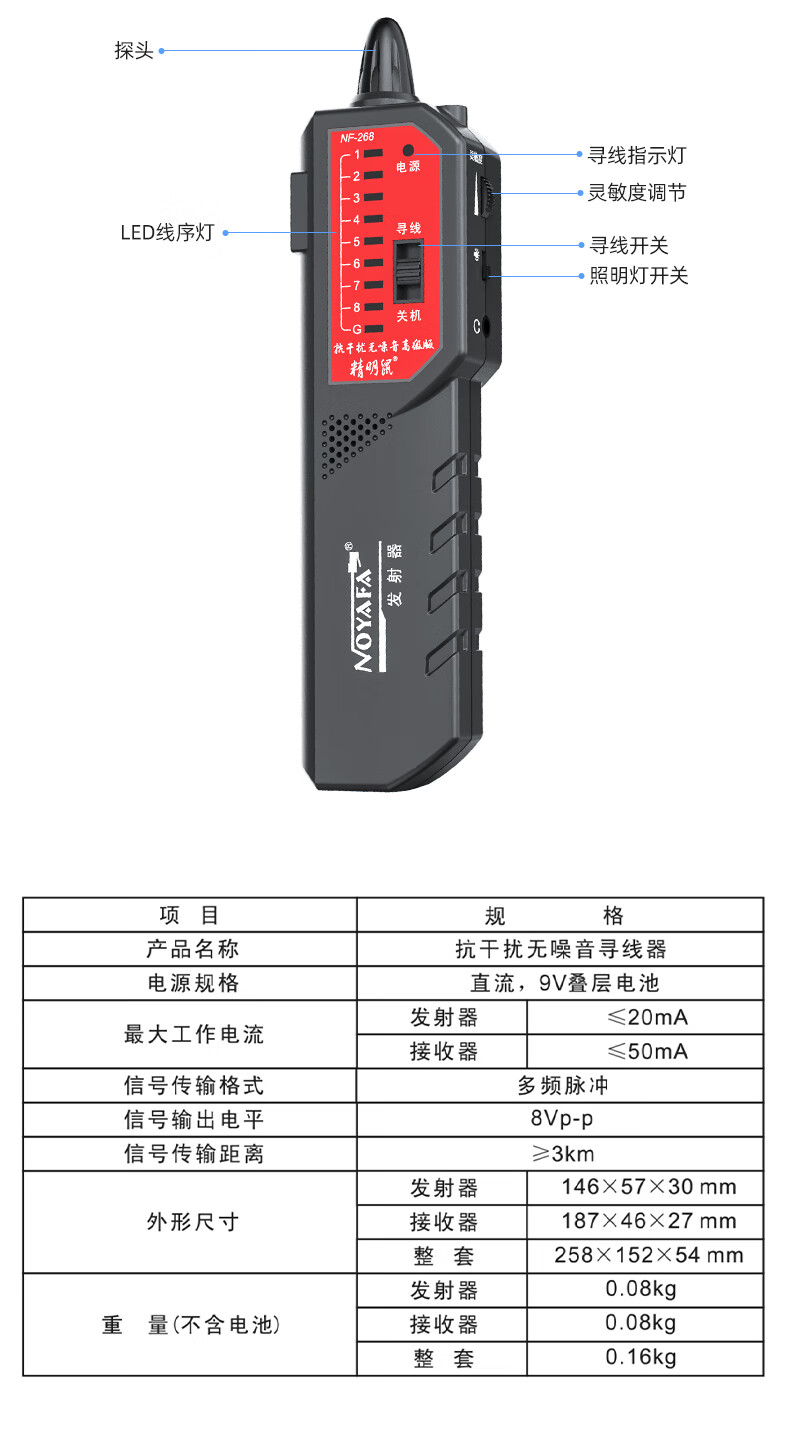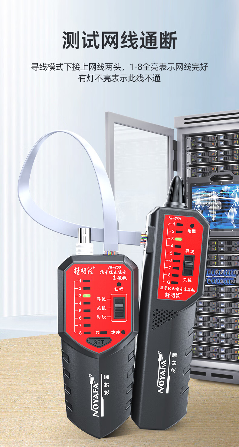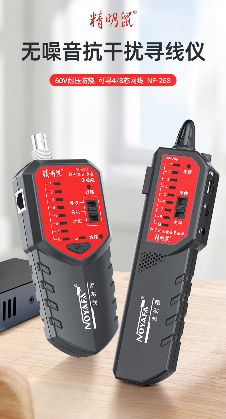 精明鼠/NOYAFA NF-268 网络检测设备 寻线仪无噪音寻线器测线器 查线仪巡线找线仪