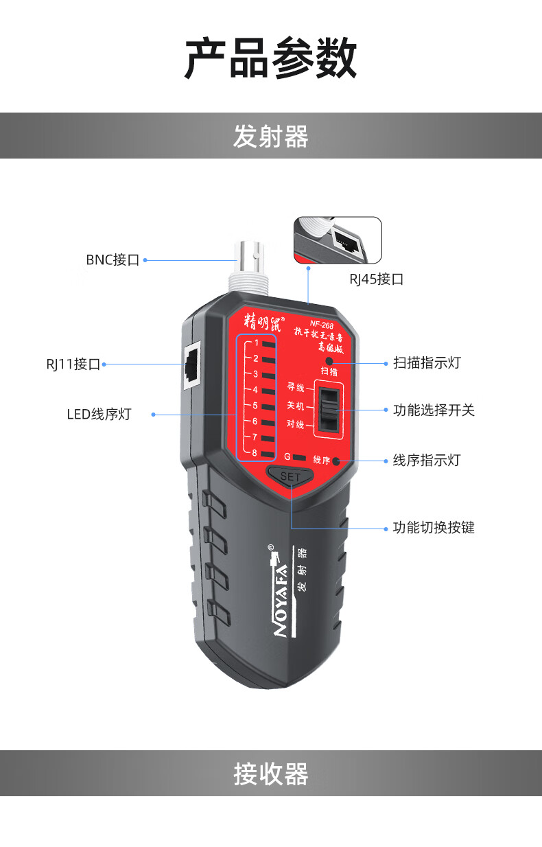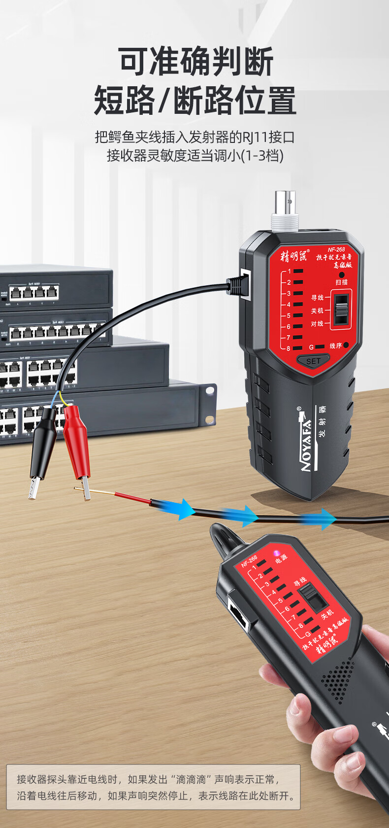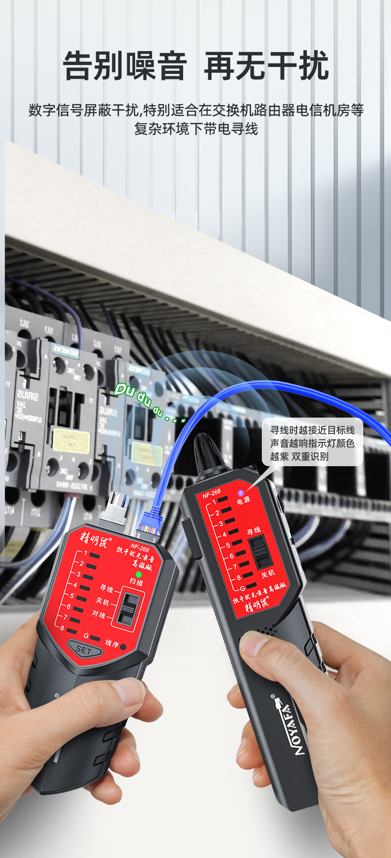 精明鼠/NOYAFA NF-268 网络检测设备 寻线仪无噪音寻线器测线器 查线仪巡线找线仪