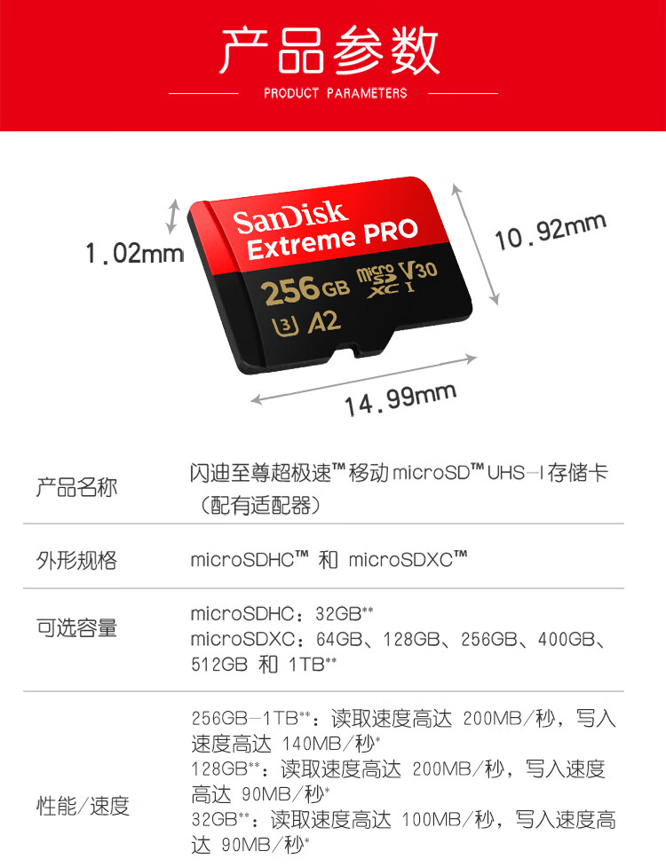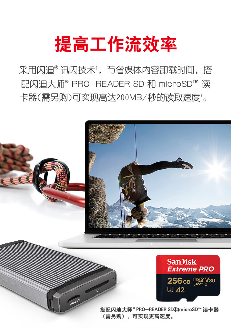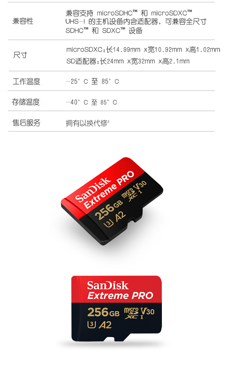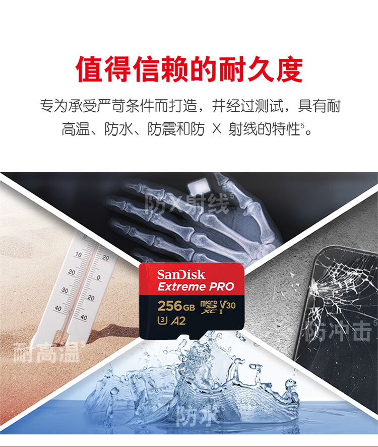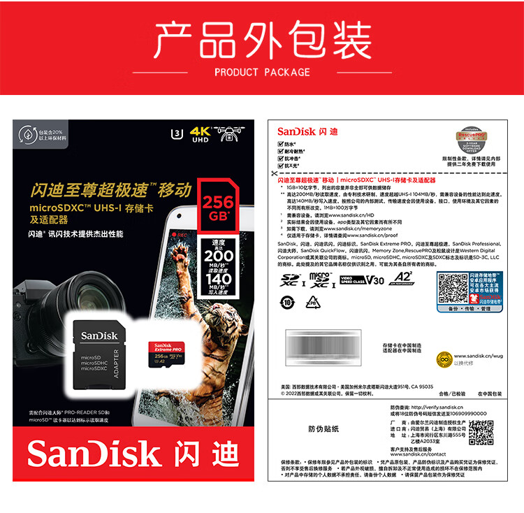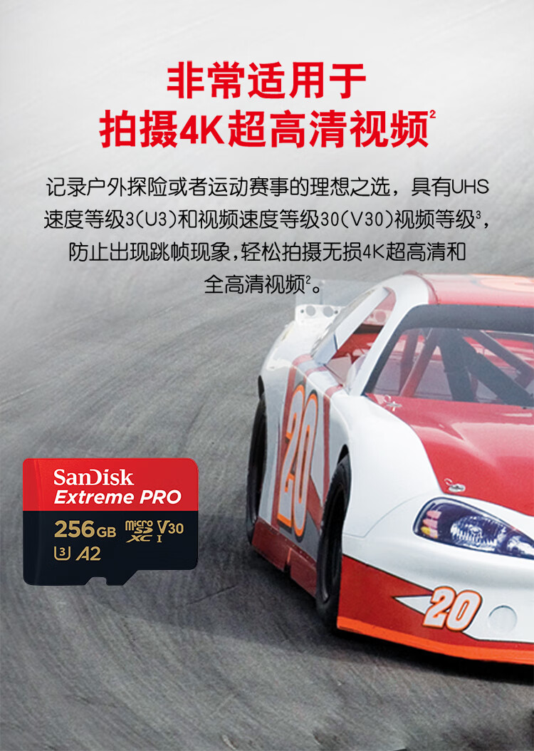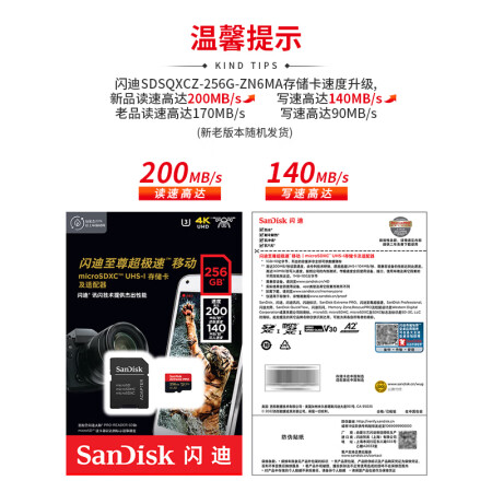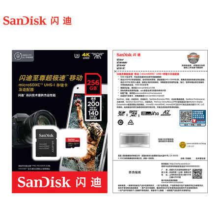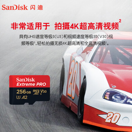 闪迪/SanDisk)U3 C10 V30 A2 U盘/存储卡 256GB TF(MicroSD 4K 至尊超极速内存卡 提速升级 读速200MB/s